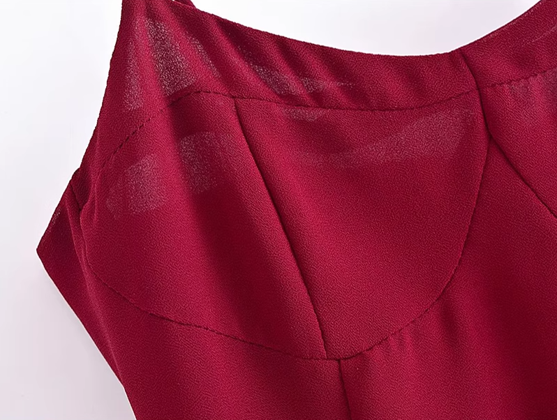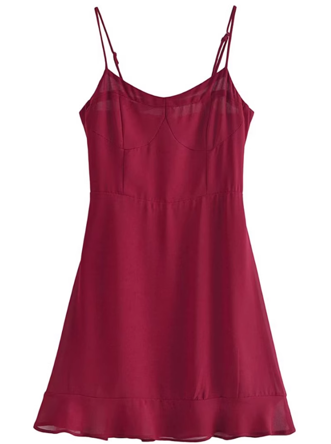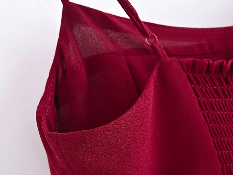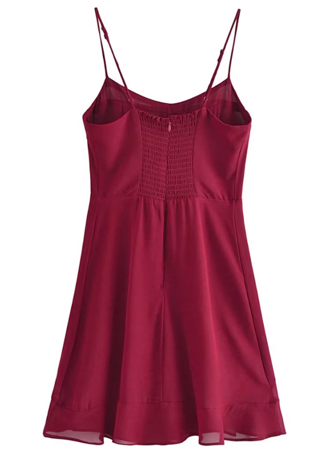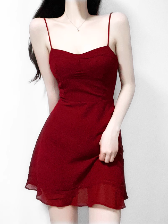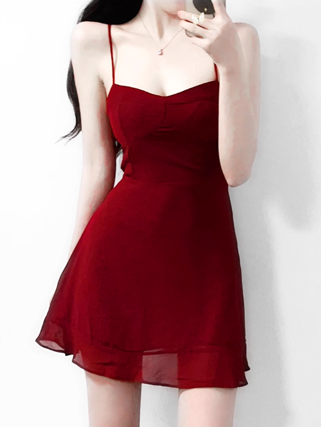 2025 summer new sexy petite wine red holiday short suspender dress R0916