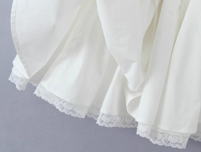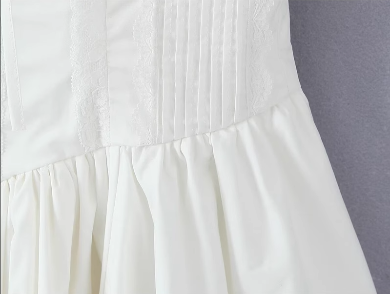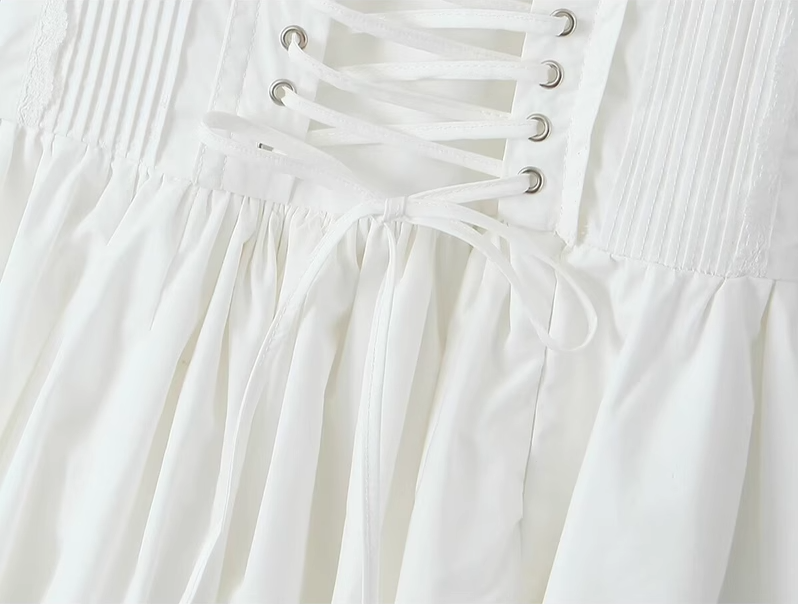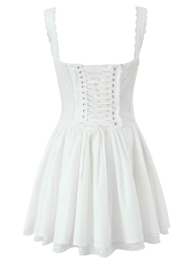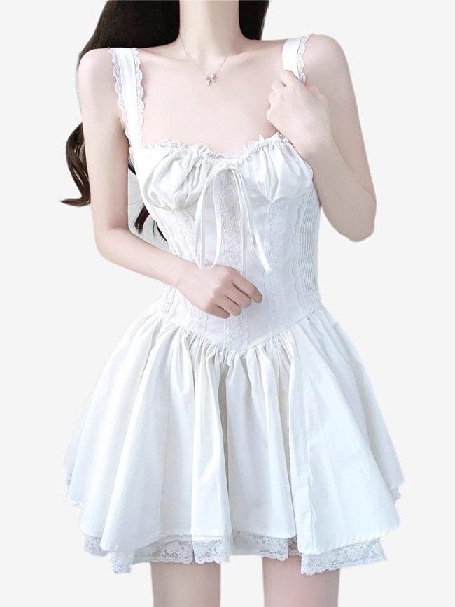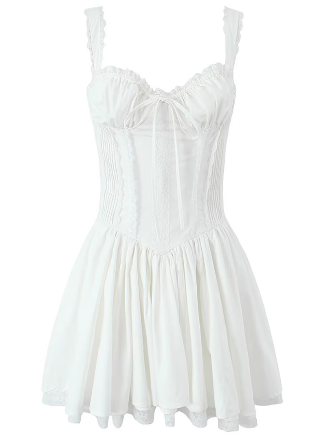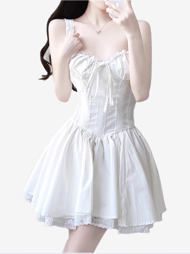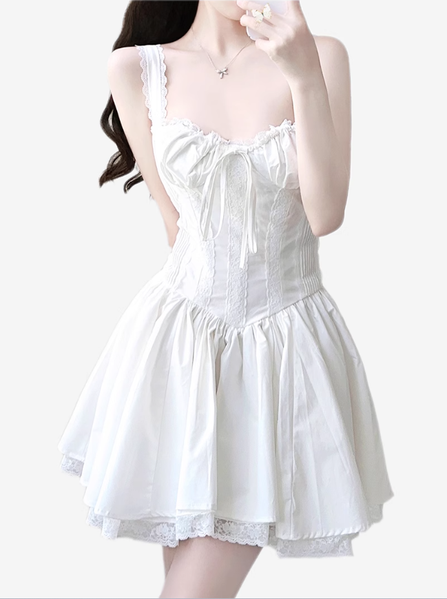 2025 Summer New White Fishbone Ballet Hottie Short A-line Suspender Dress R0974