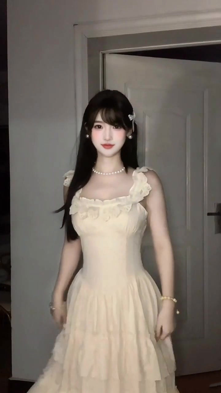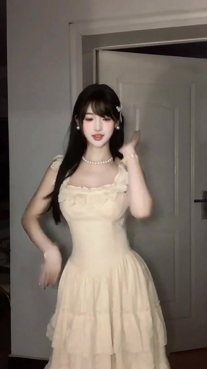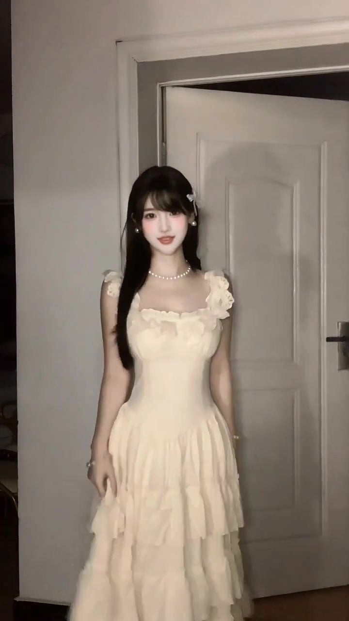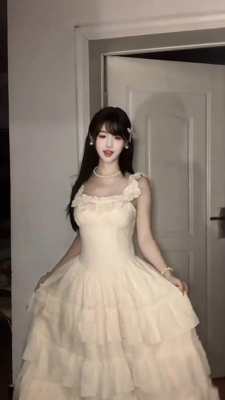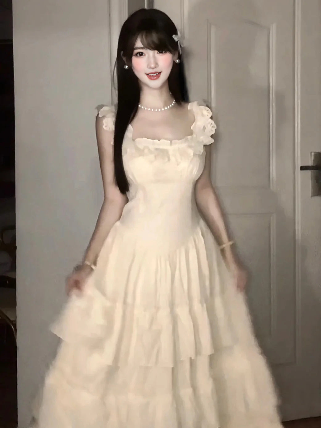 A-line princess dress with small flying sleeves and a sweet fluffy cake waist R0501