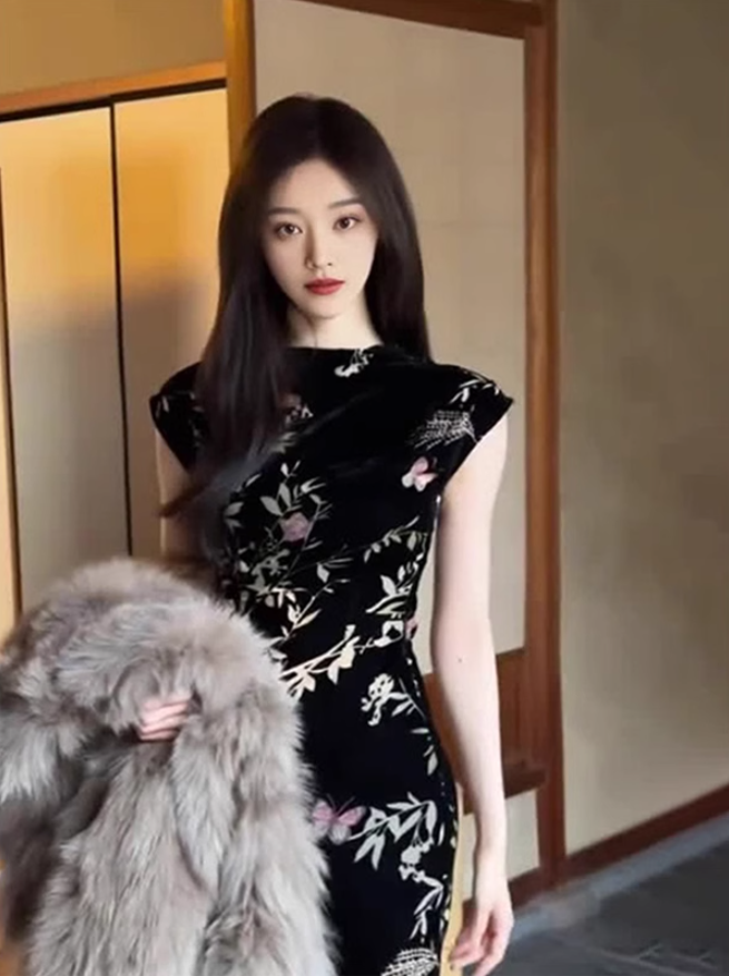 Beautiful young cheongsam 2025 new exquisite new Chinese floral dress R1819
