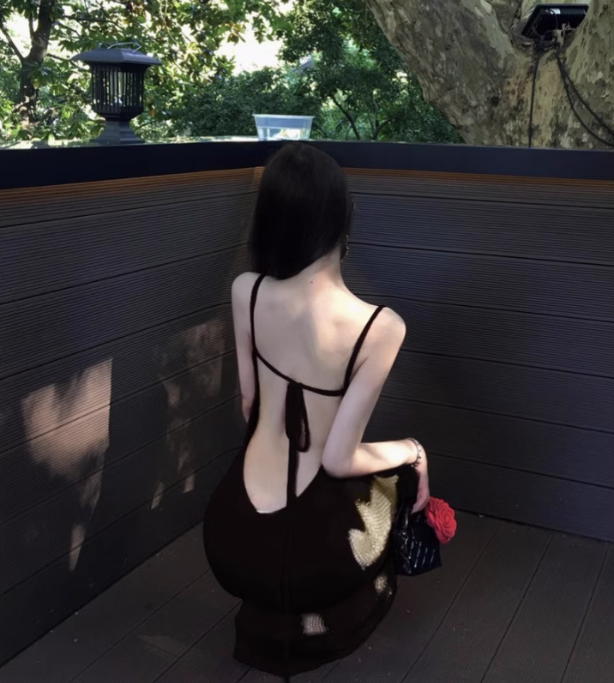 Black fishtail halter dress sexy hip-wrapped lace-up holiday inner long skirt R1520
