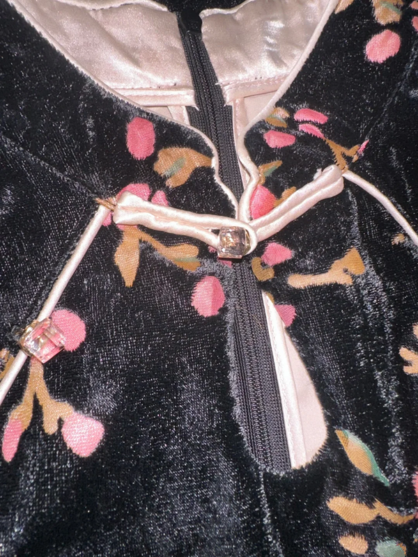 Black with pink floral print, fitted waist, elegant and classic mid-length ball gown R6863