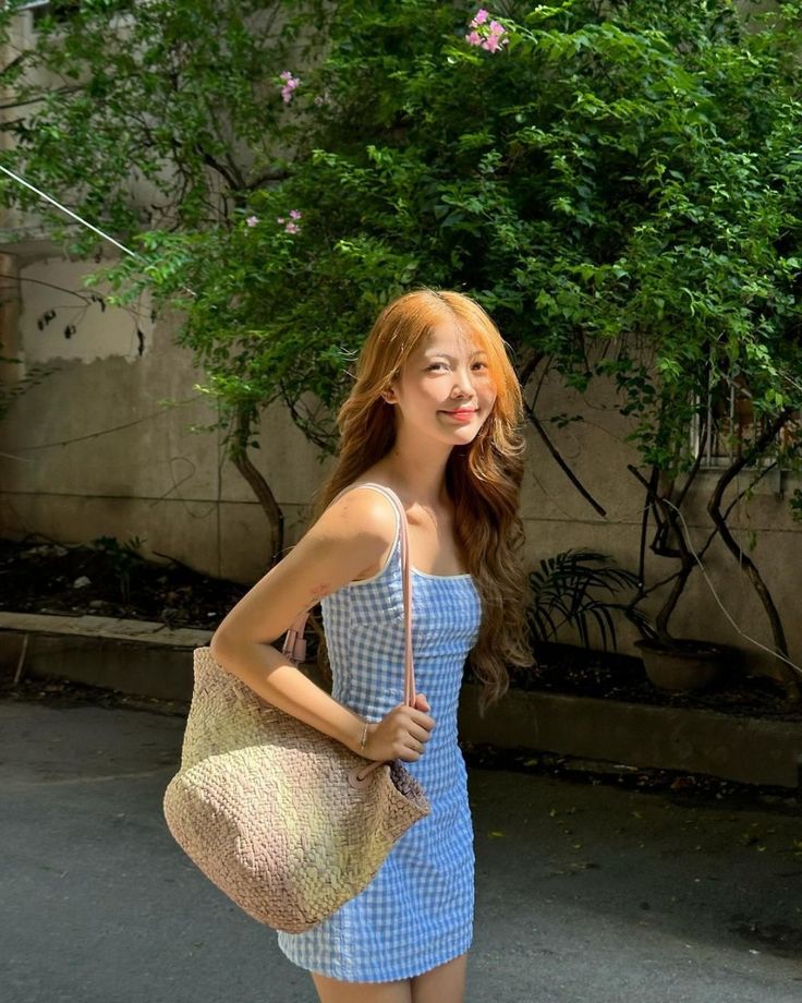 Blue checkered suspenders waist slim short skirt homecoming dress R3346
