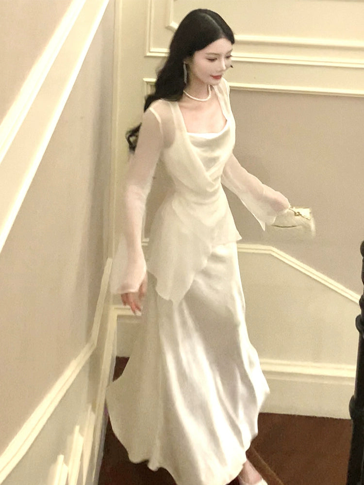 cardigan long sleeve jacket top satin long dress S6011