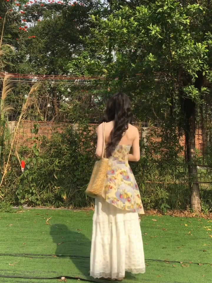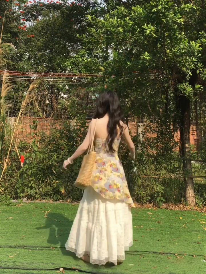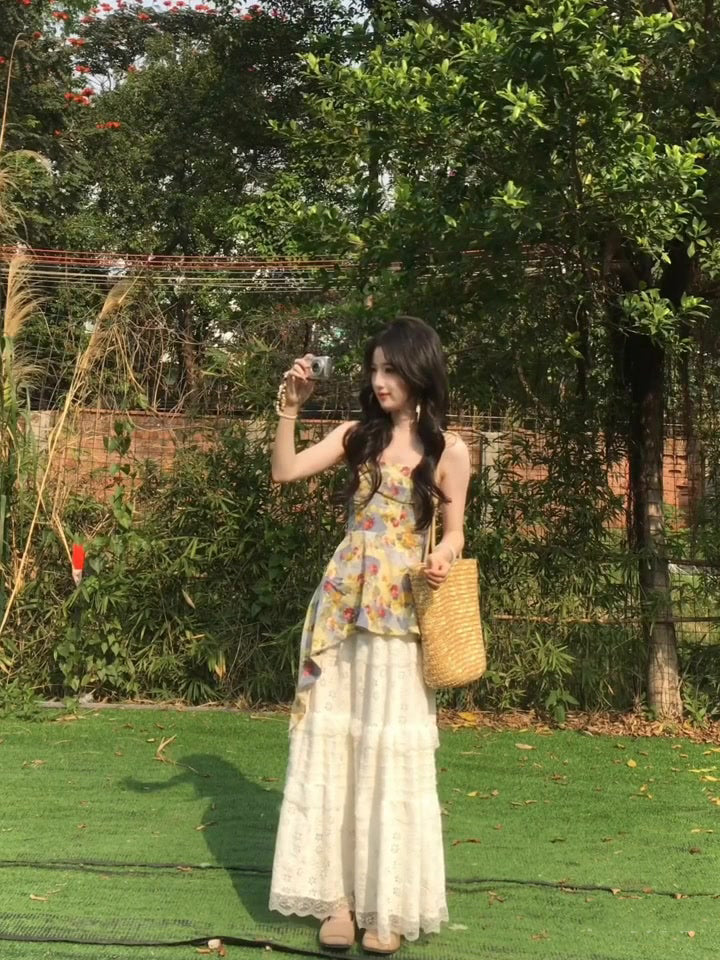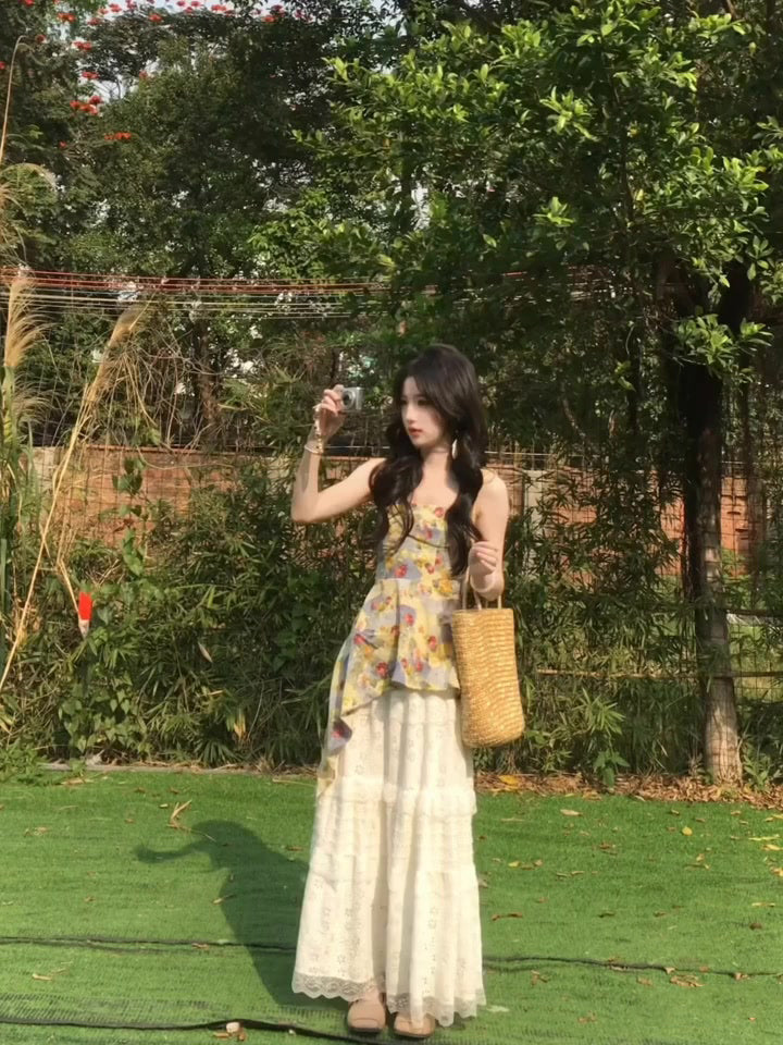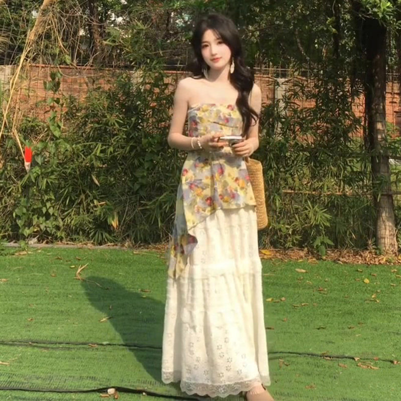 Casual lazy style gentle temperament floral camisole skirt two-piece set R0874