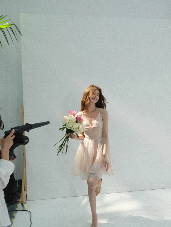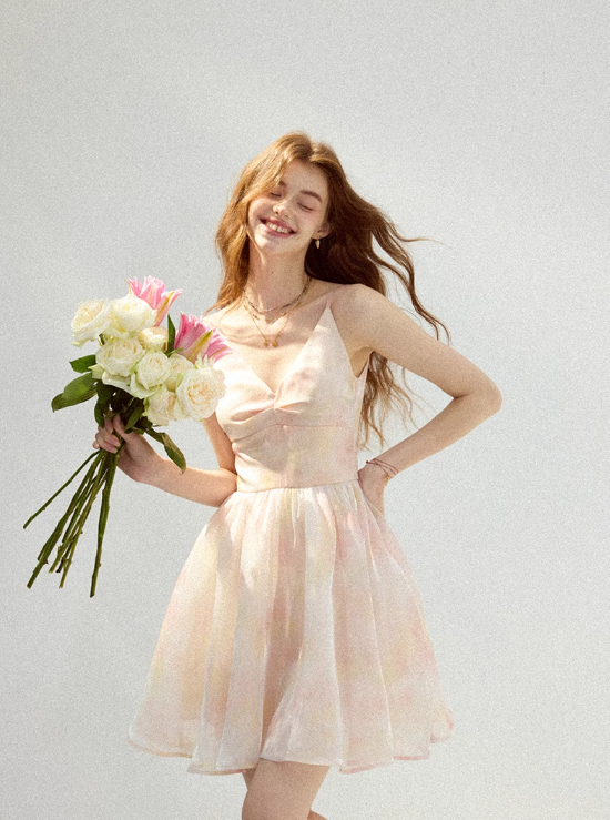 Cherry Blossom Floral Dress French Suspender Dress Holiday Outfit Short Skirt Women Summer R3424