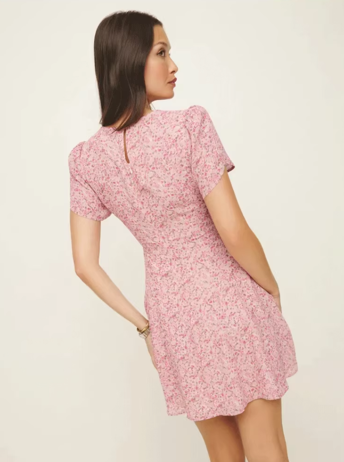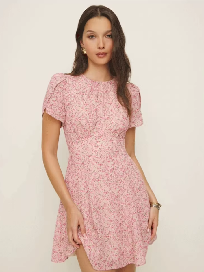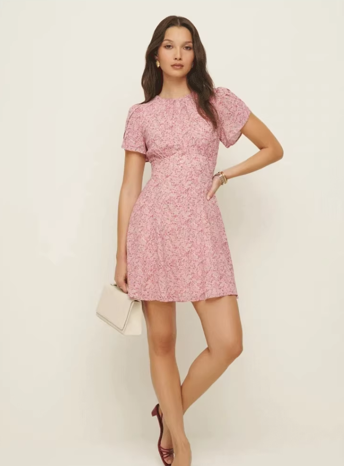 Dress Red Floral Chiffon French Style Retro Round Neck Slim Fit A-line Short Sleeve Dress R2929