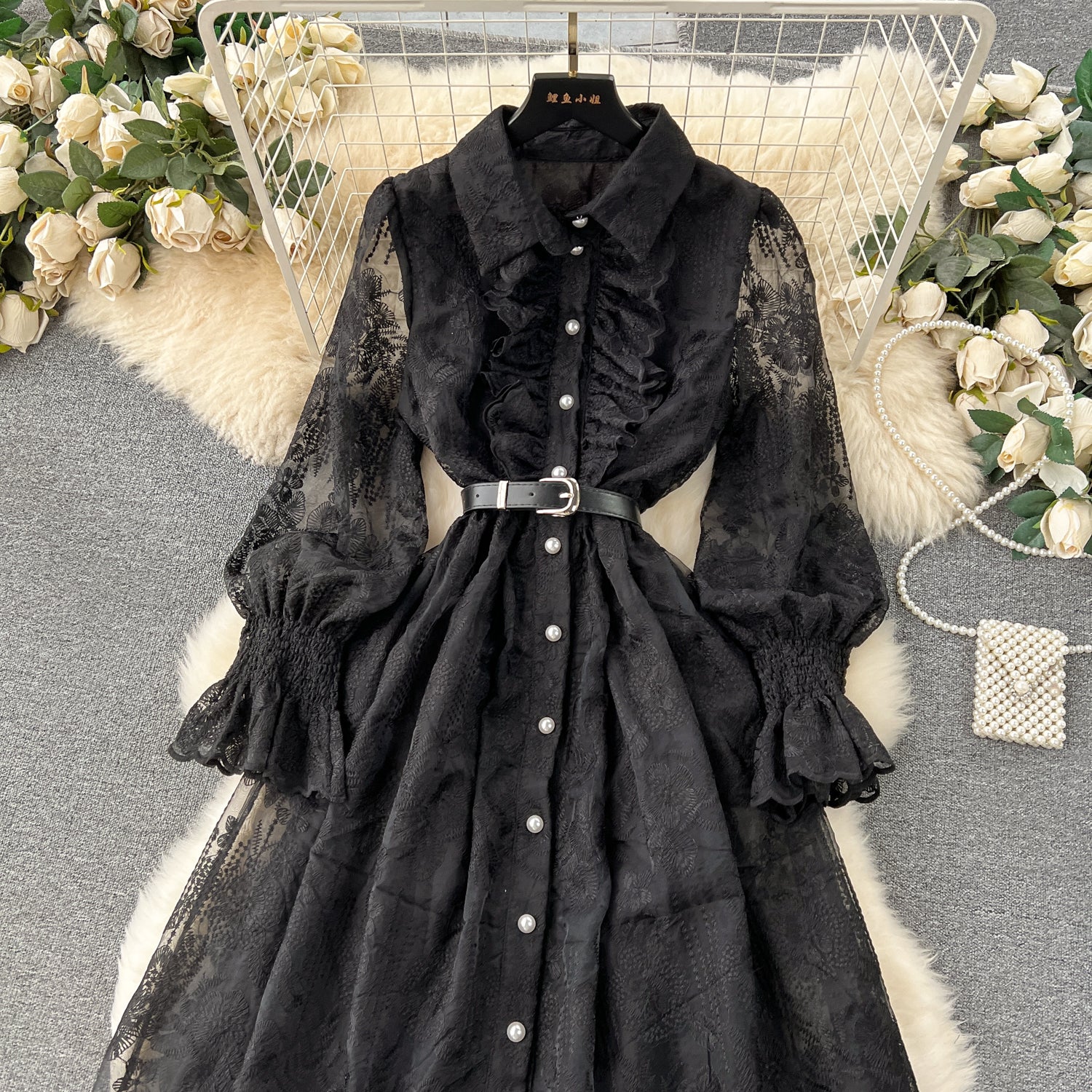 French court style dress with ruffled edges, slim-fitting long lace dress, high-end dress R2304