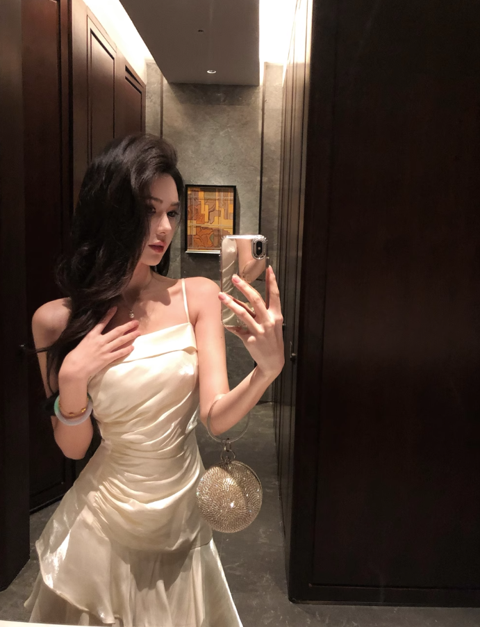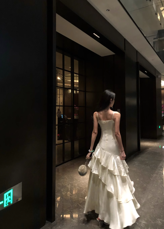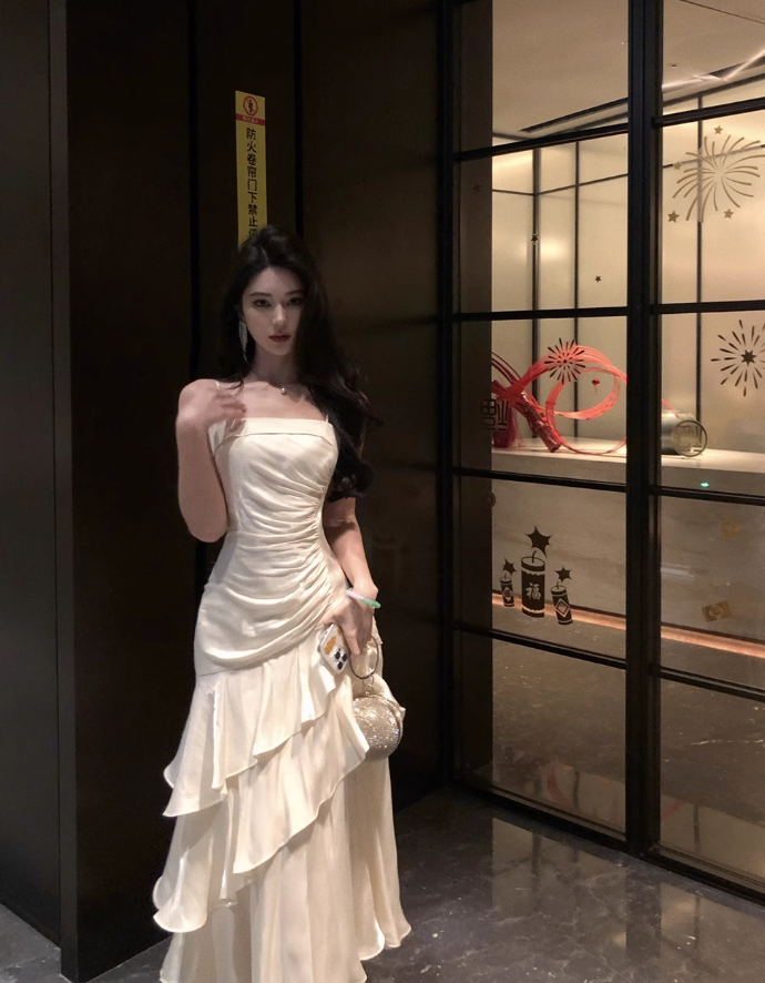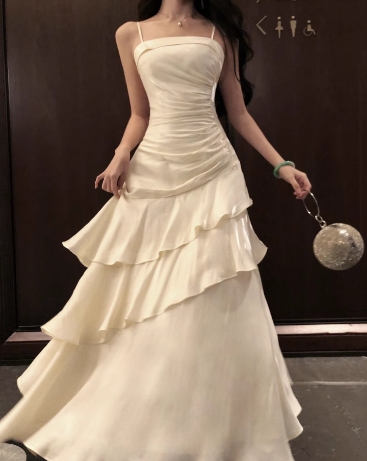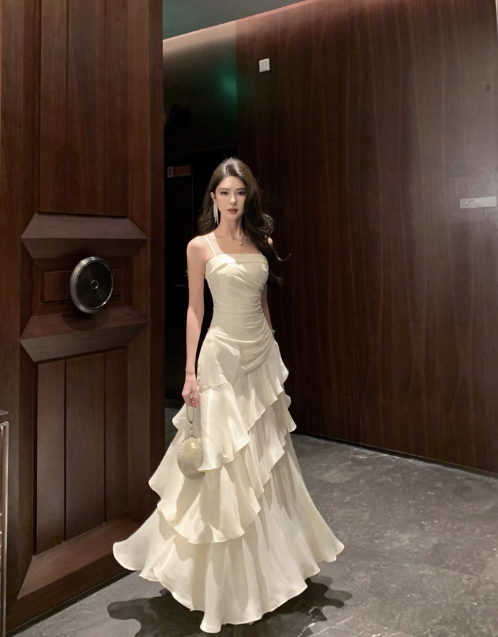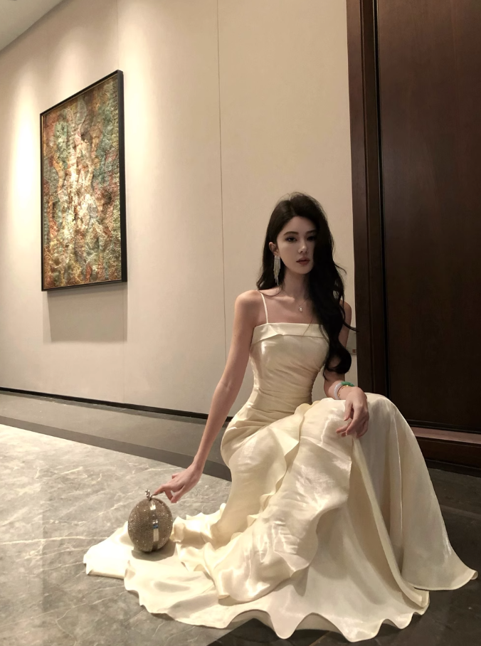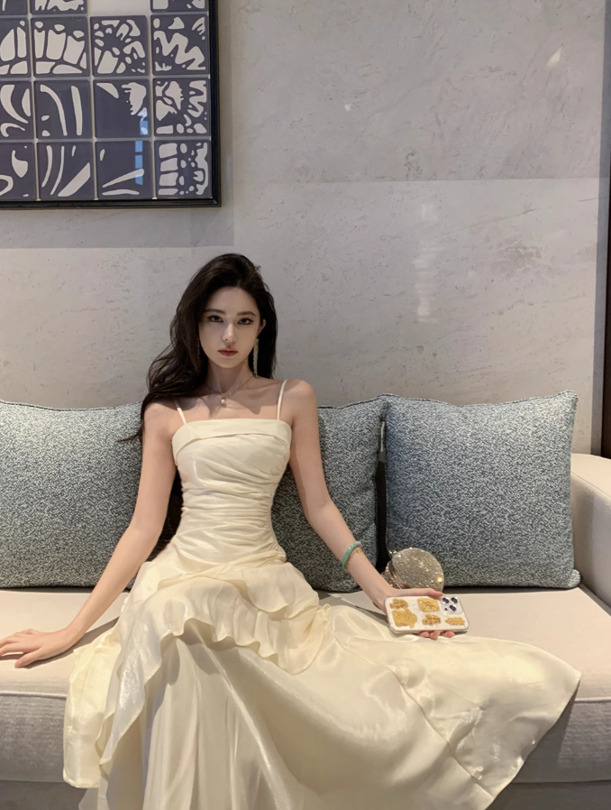 French gentle style ruffled sling dress temperament lady high-end waist hip banquet dress skirt R0410