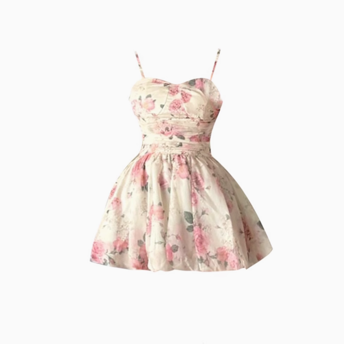 French gentle style sling floral dress 2025 large size pure desire waist A-line skirt R1169
