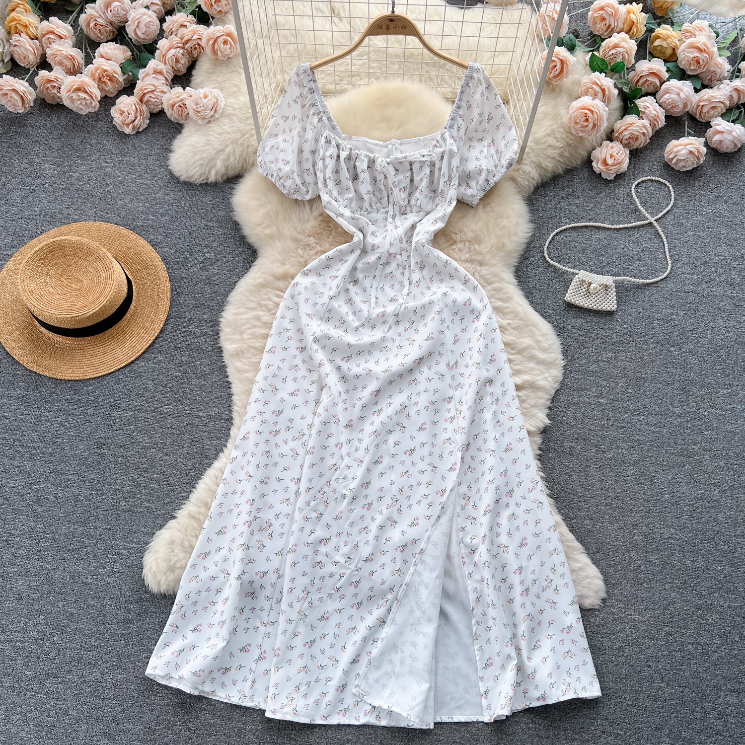 French pure desire high-grade floral dress slim temperament super fairy slit long skirt R2144