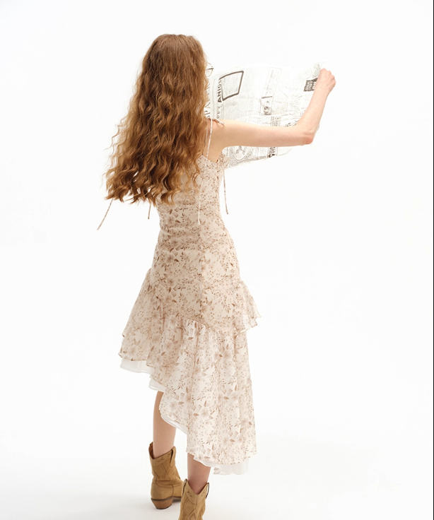French suspender skirt irregular hot girl outfit dress floral short skirt small skirt female summer R3420