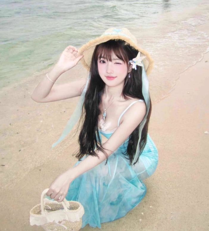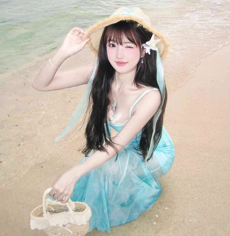 Gentle mint green floral sling dress beautiful waist slim hip skirt R0506