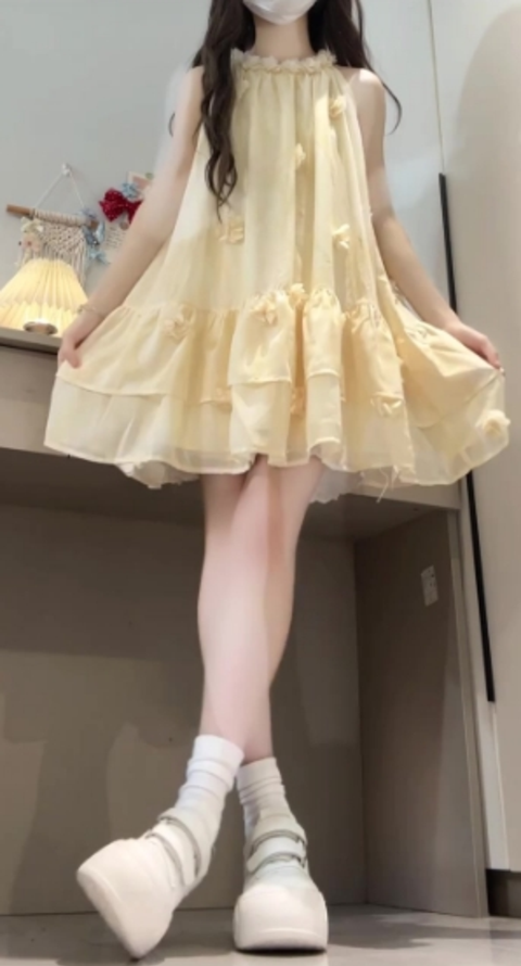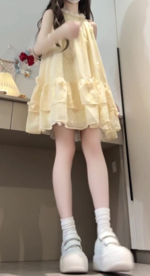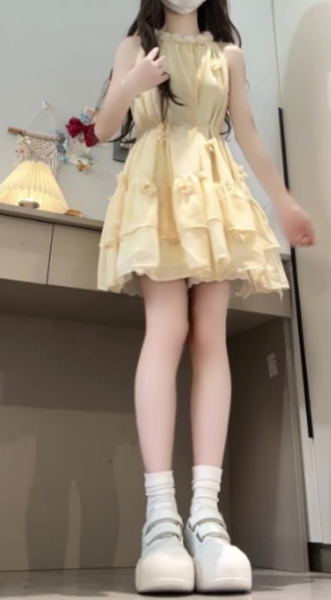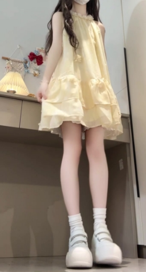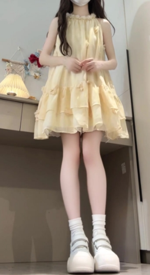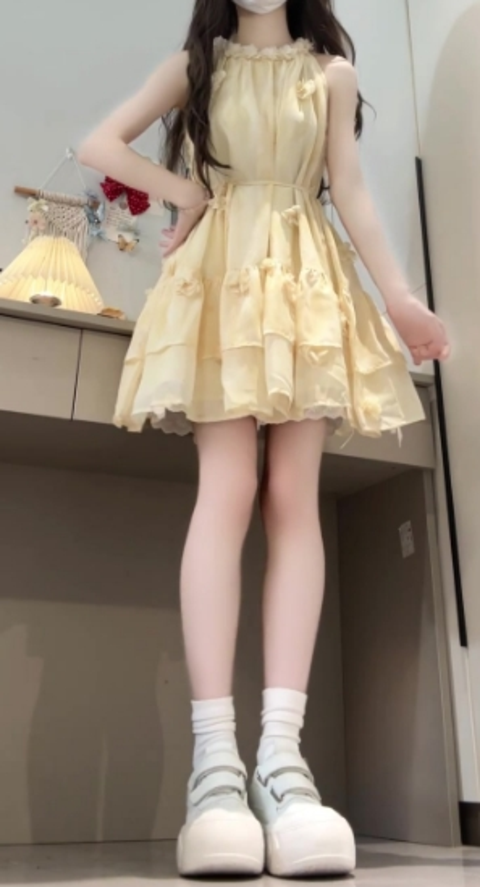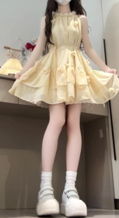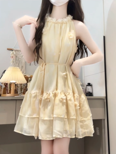 Gentle style flower sleeveless halter dress beautiful temperament waist A-line short skirt R0810