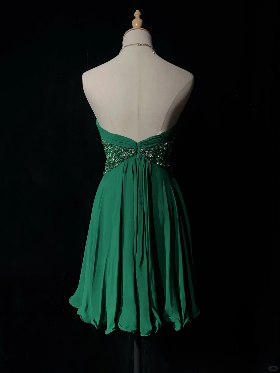 Green tube top pleated high waist sexy skirt homecoming dress R4963