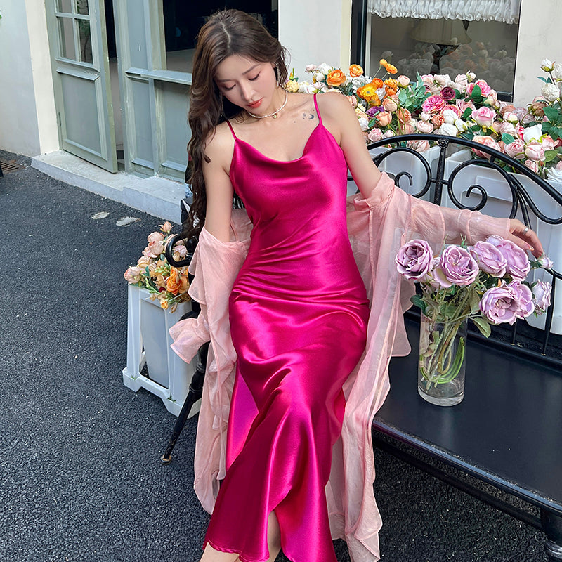 High-grade triacetate suspender dress exquisite dress lady temperament dress slim fit R0986