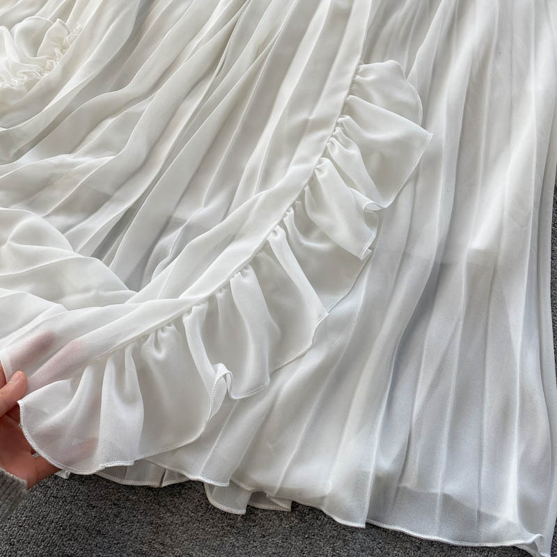 Holiday dress temperament V-neck contrast color stitching pleated big swing beach dress R2294