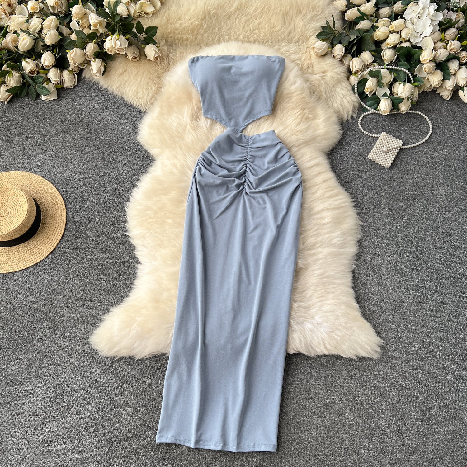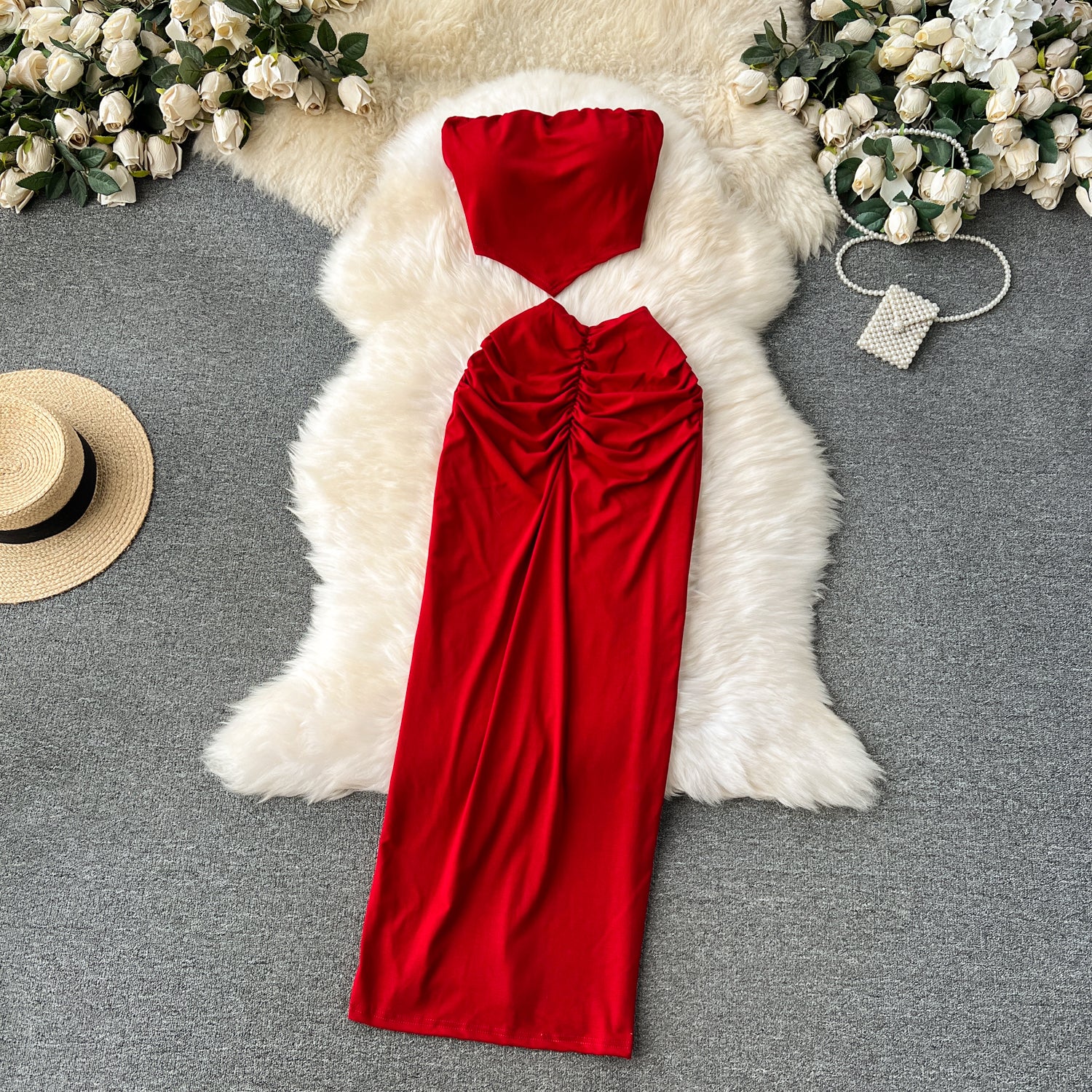 Hot girl style tube top short versatile pleated slim skirt fashionable two-piece skirt suit R2239