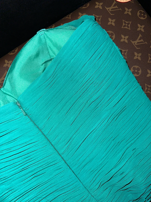 Lake blue strapless, fitted waist, hip-hugging, long fairy ball gown R6929