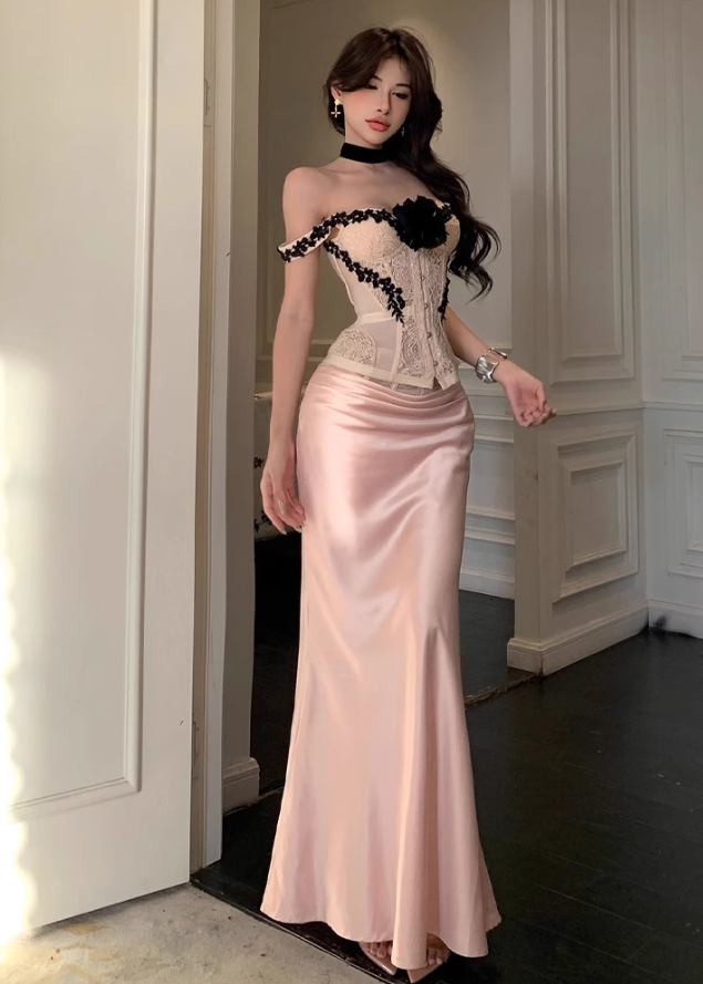 Large size French atmosphere lace lace tube top pure desire skirt hot girl suit R1865