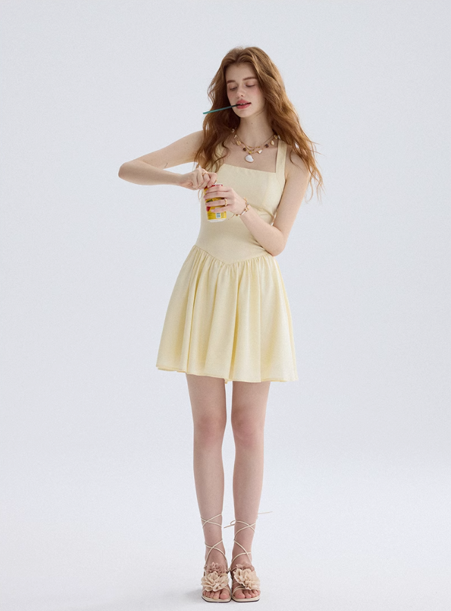 Lemon honey tea yellow dress French suspender skirt holiday wear short skirt skirt female summer R3450