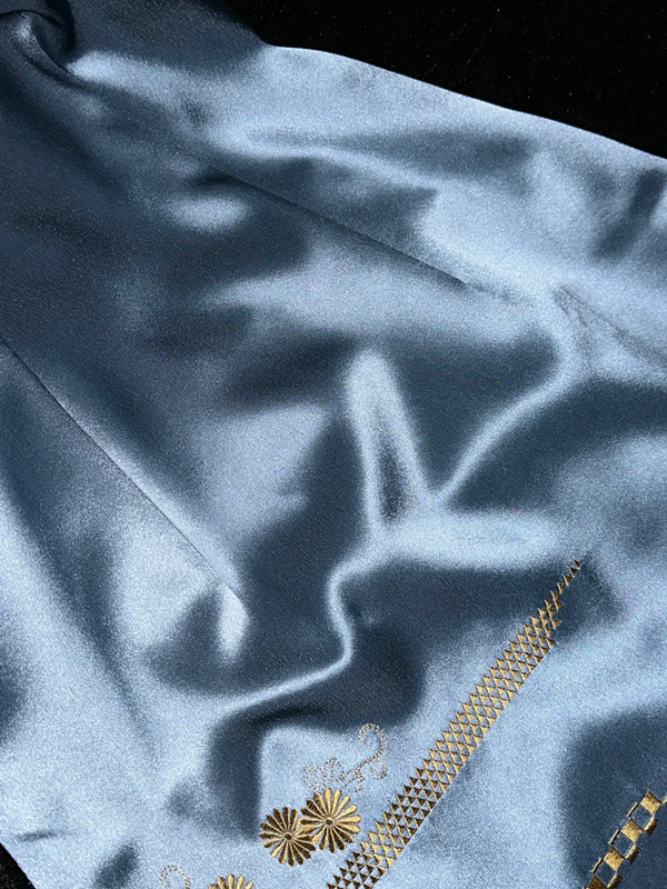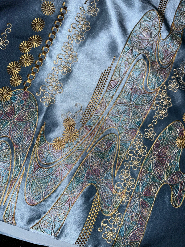 Light blue fitted floral print midi ball gown with a classic, elegant style R6869