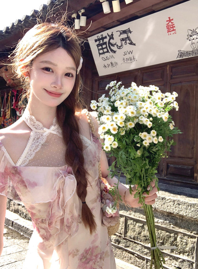 Long printed halter neck dress for women summer French style skirt R4831