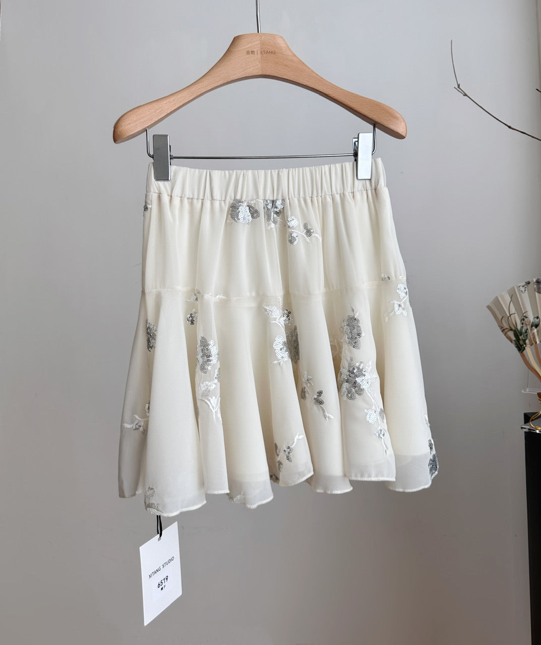 Nanyang noblewoman 2025 new silver sequin embroidered cape top + embroidered skirt set R2012