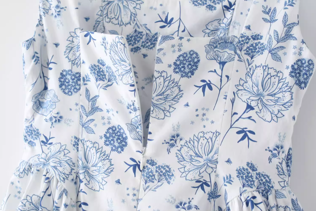 New antique style blue and white porcelain floral pattern niche slimming waist cinching suspender dress new R2878