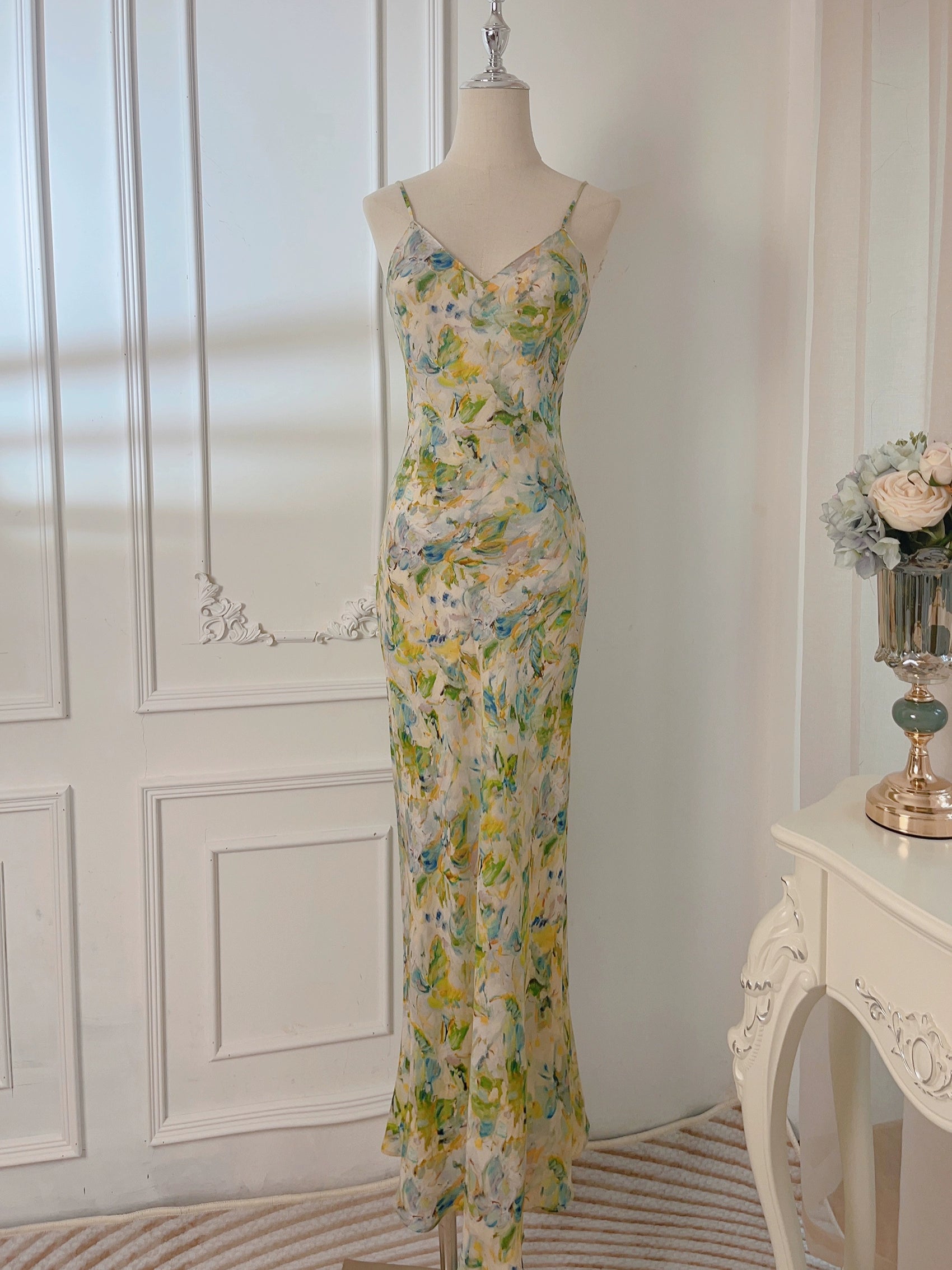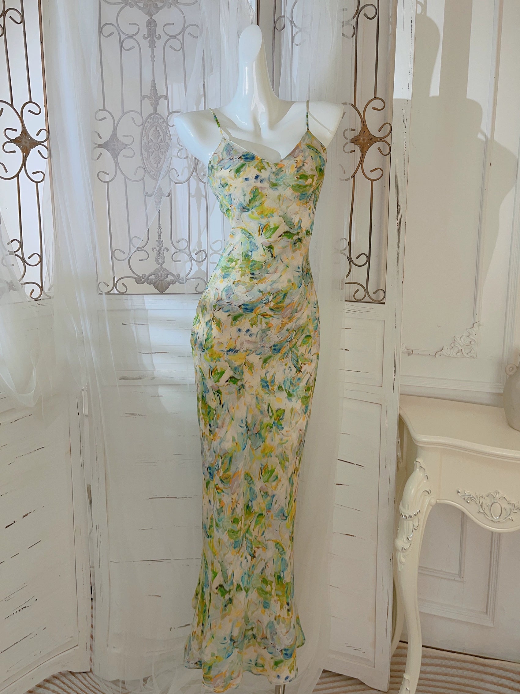 painting new long floral dress party dress S6038