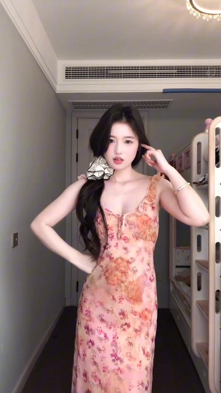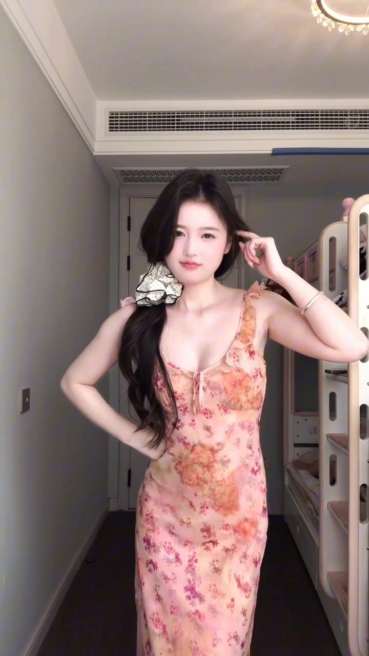 Pink floral suspender dress beautiful waist slim hip skirt R0622