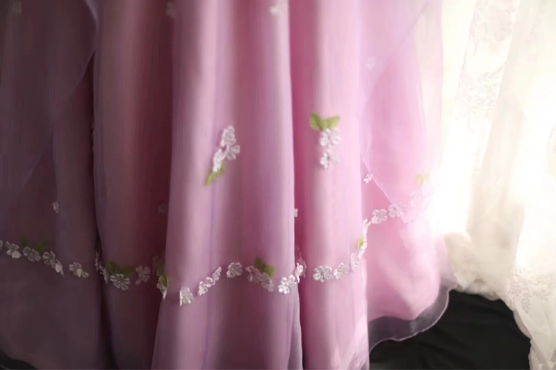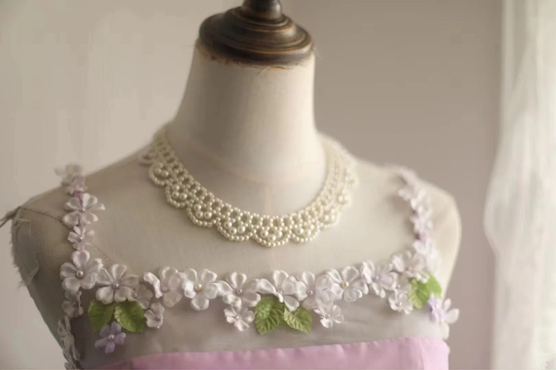Pink halter-neck floral design, fitted waist, A-line silhouette, full skirt, long ball gown, bridal dress R6841