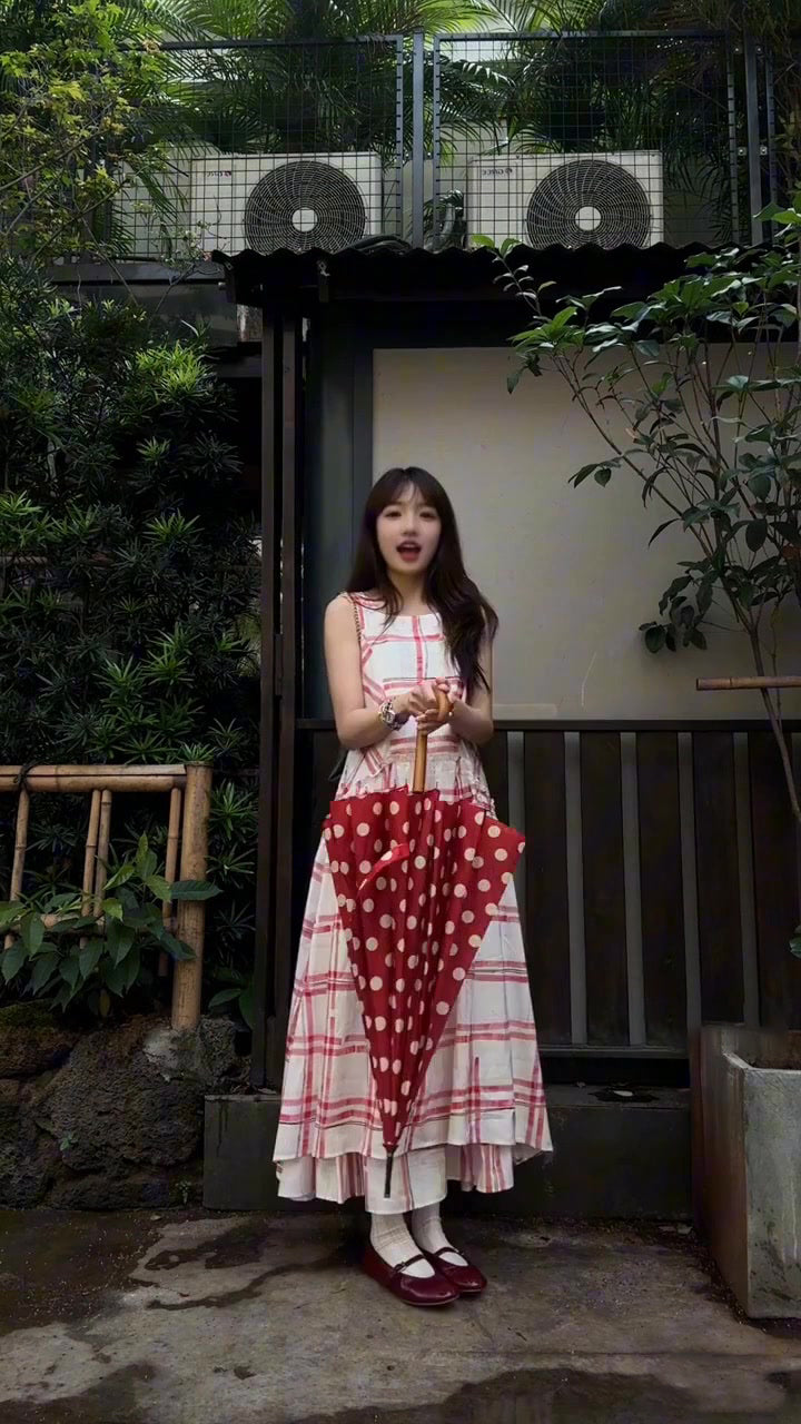 Pink plaid sleeveless dress beautiful age-reducing loose A-line vest dress R0585