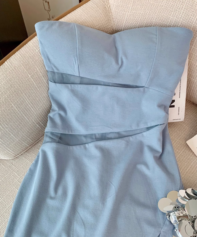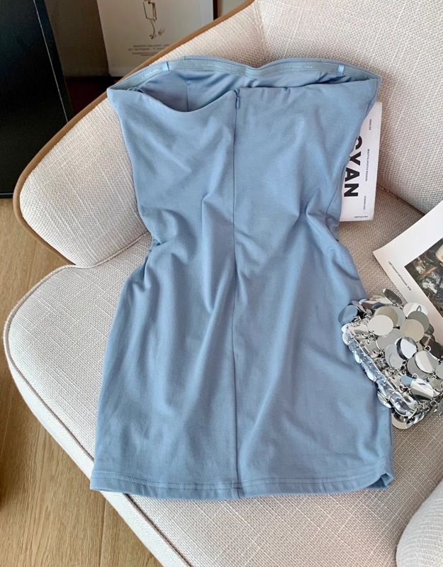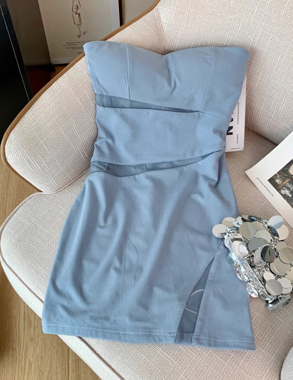 Pure sexy tube top dress for women new style waist slimming mesh short hip skirt R3994