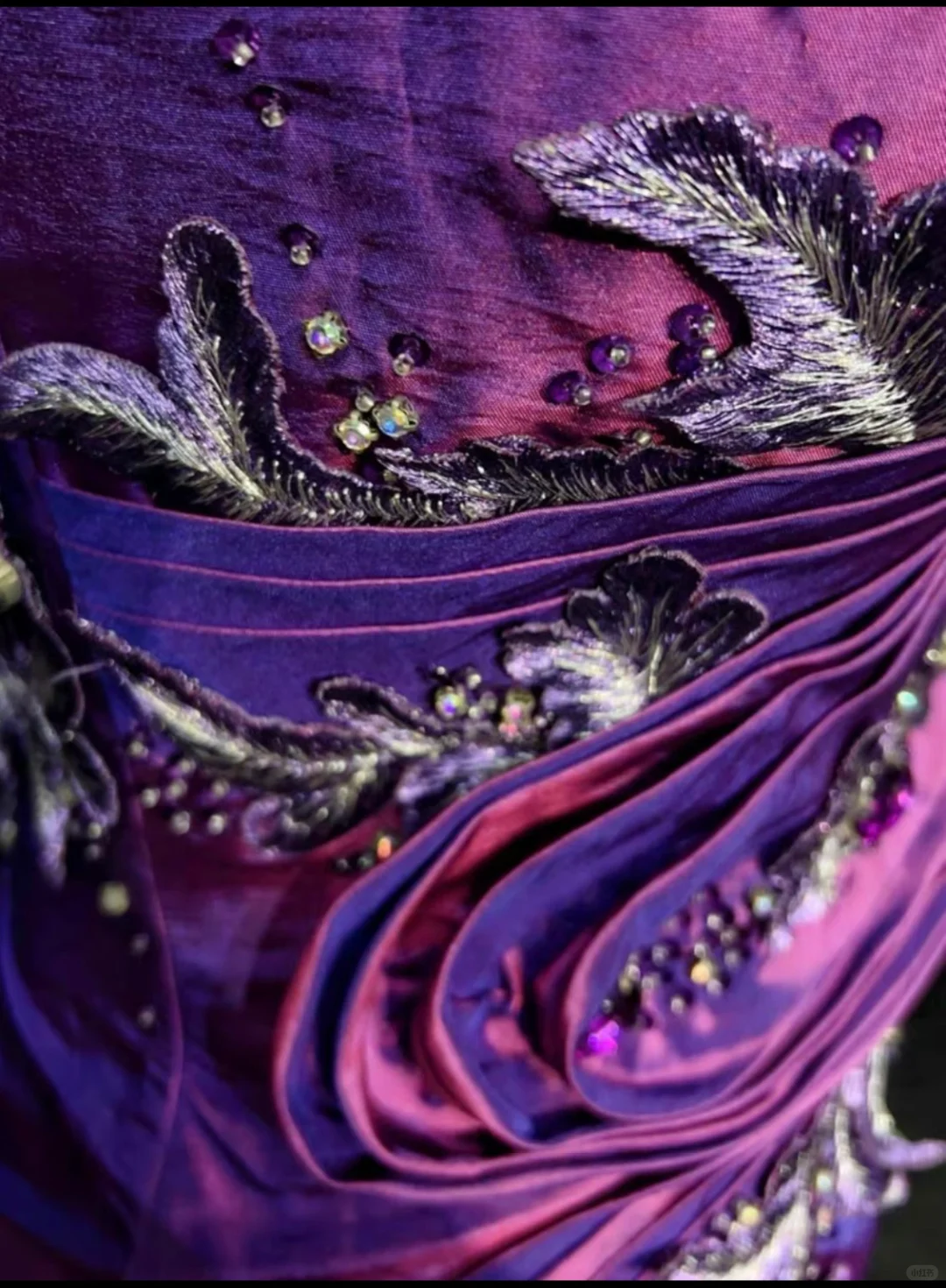Purple suspender design pleated embroidery waist mid-length fishtail skirt skirt homecoming dress R4939