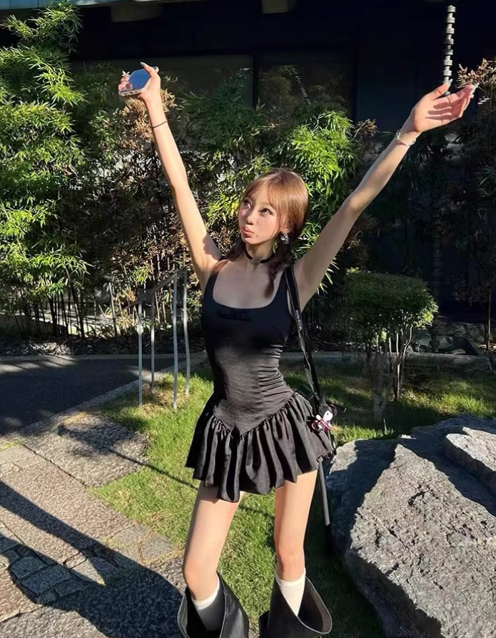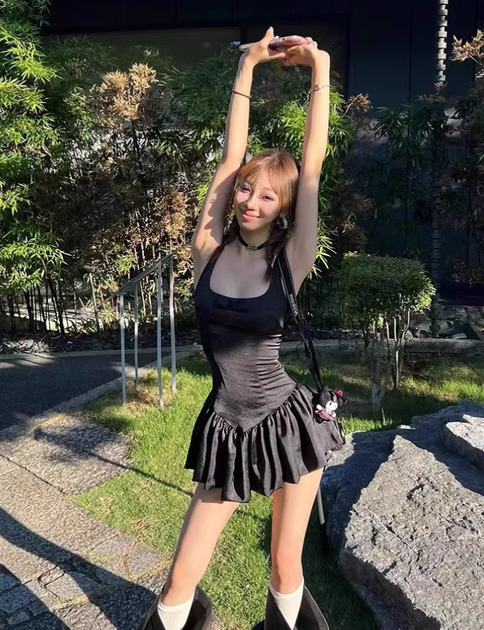 Retro Pure Desire Suspender Dress Large Size Temperament Bow Ballet Style Tutu Skirt R1880