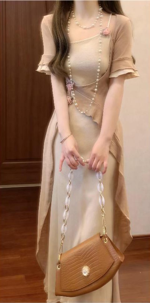 Retro ruffled two-piece dress with gentle temperament, slim waist and hip skirt R0647