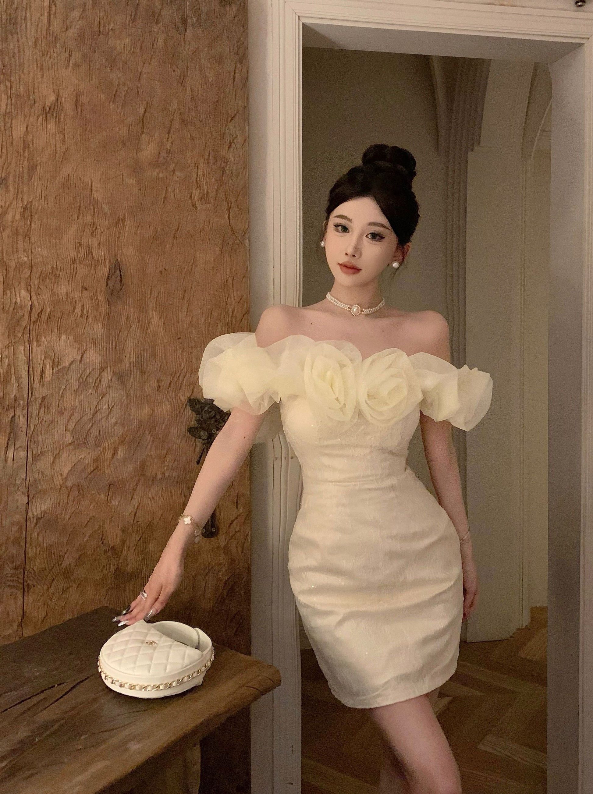 Sexy off-the-shoulder dress, high-end design, slim waist, slimming and hip-hugging dress R3791