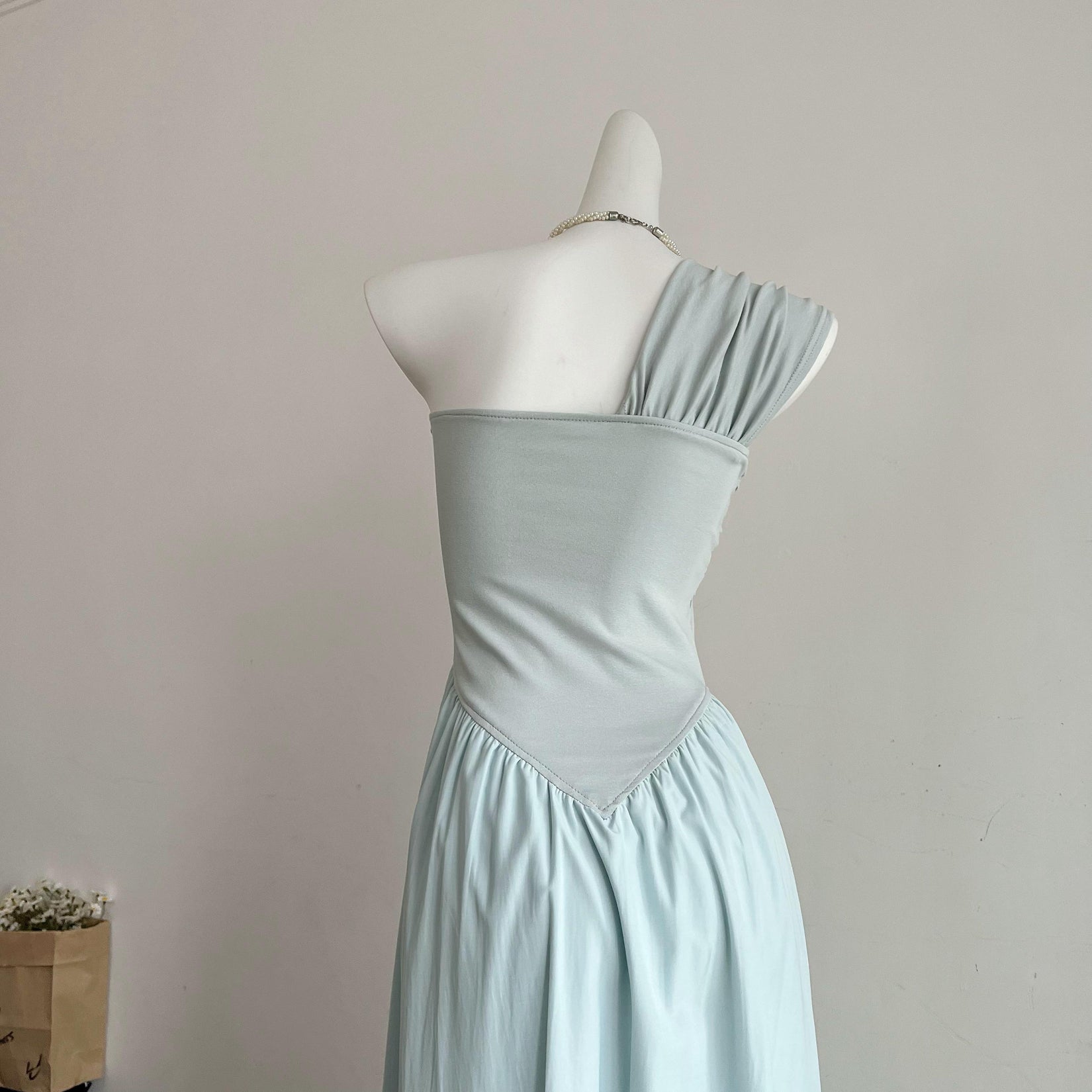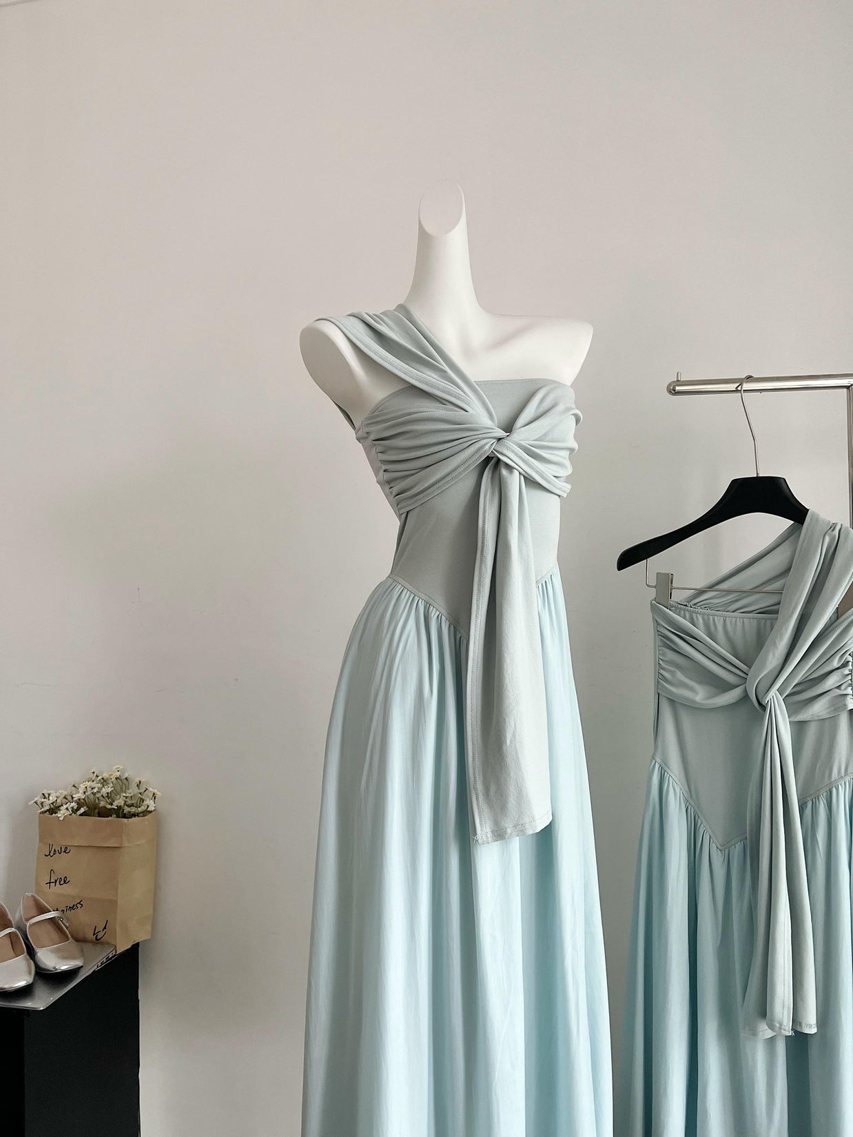 Slimming waist sleeveless hollow pure off-shoulder casual long knitted dress R2039