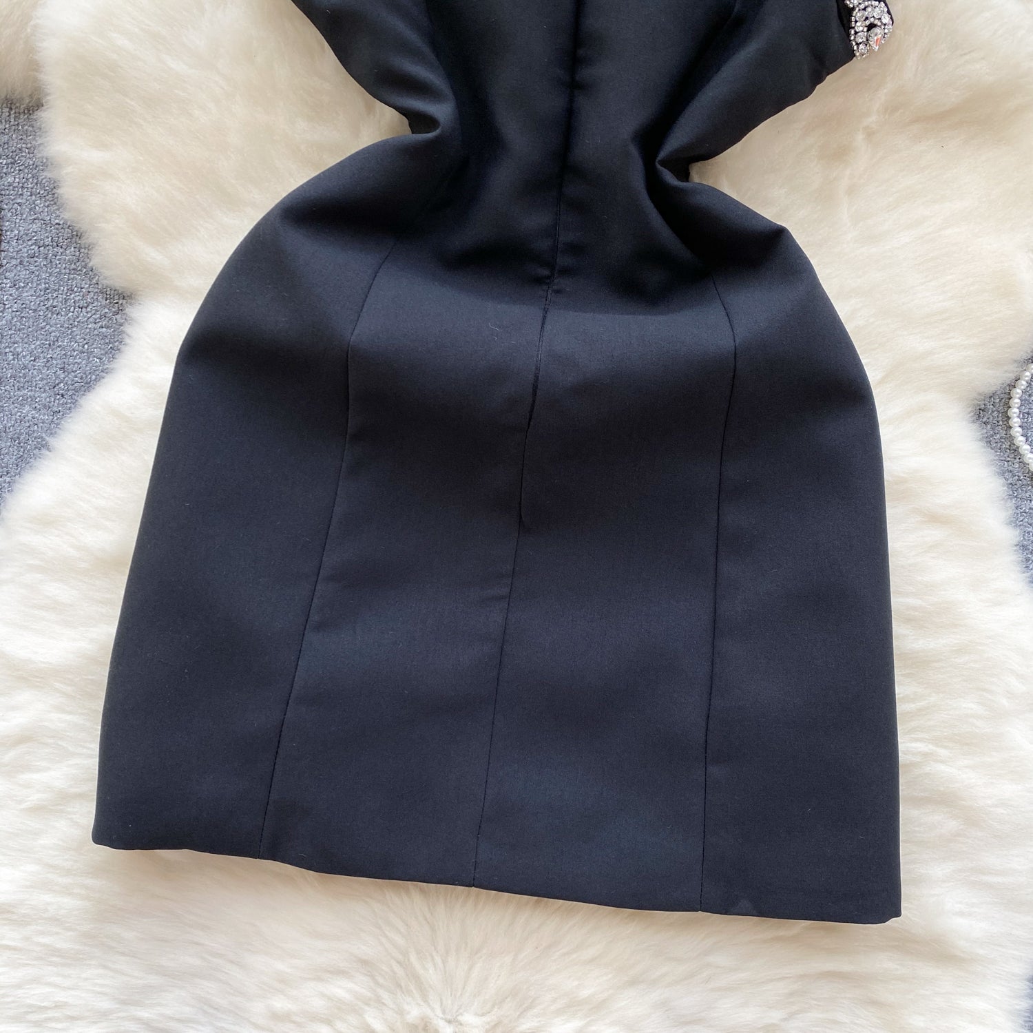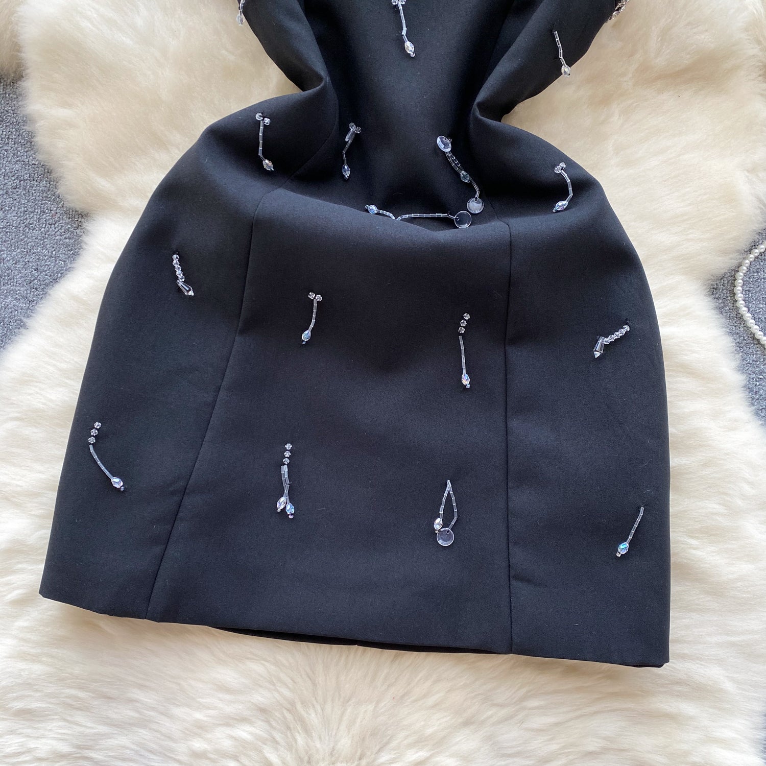 Small dress high-end niche beaded tassel slim short heavy diamond-studded halter dress R2338