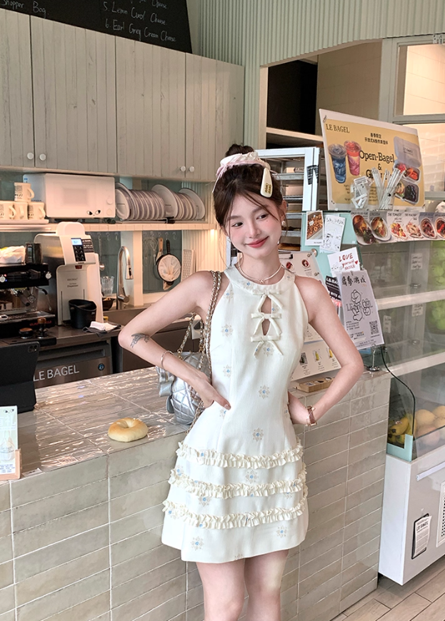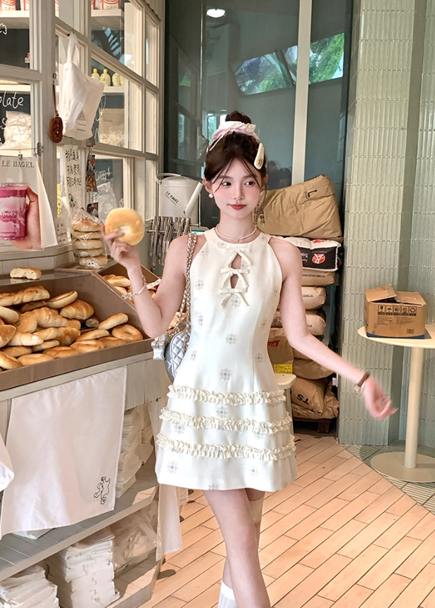 Solid color halter neck sleeveless waist dress summer French temperament retro skirt R4703