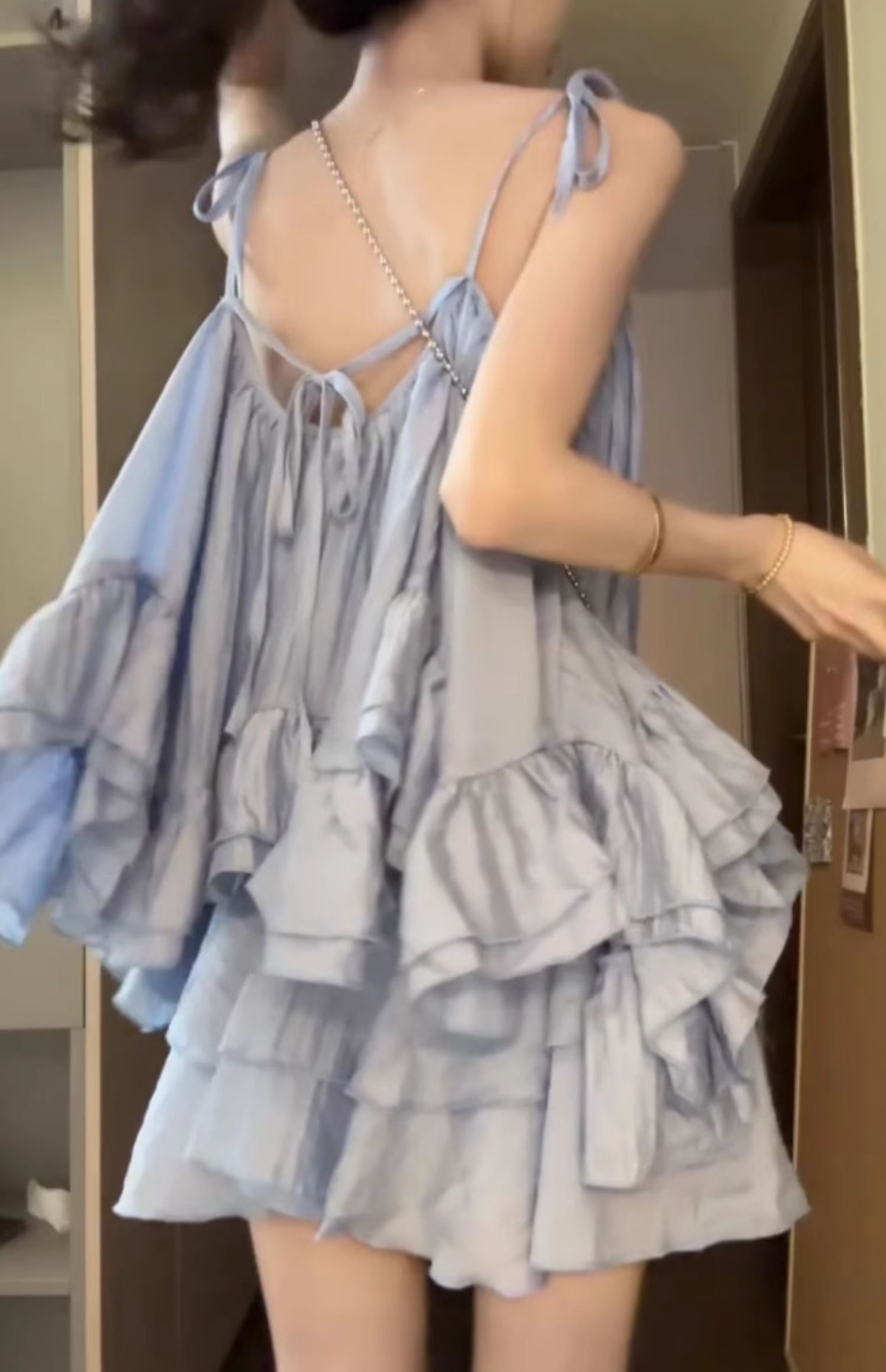 Suit blue suspender dress short skirt skirt summer outfit matching a complete set R0795