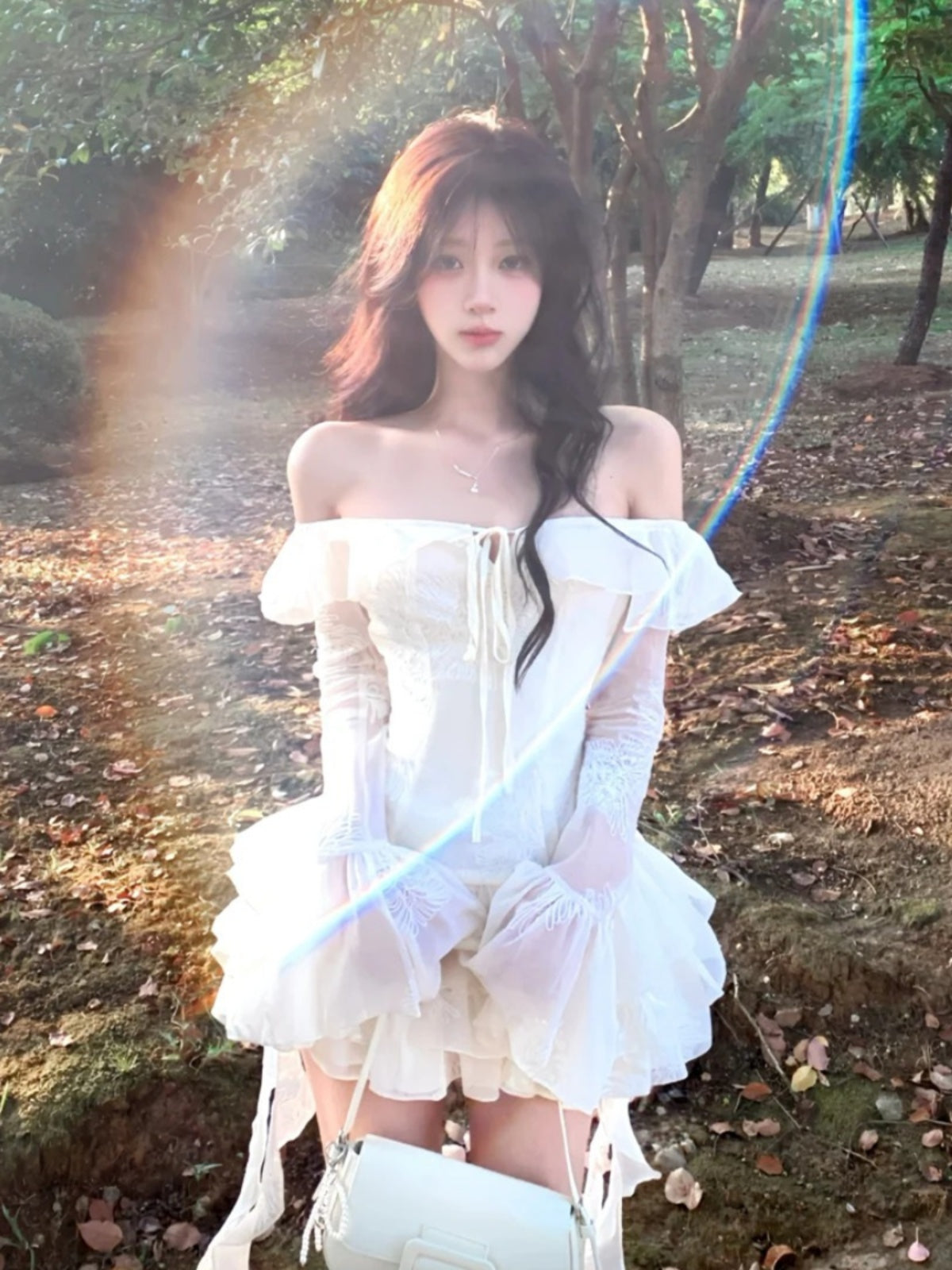 Summer New French One Shoulder Skirt Sweet Heavy Industry Ribbon Irregular Dress Short Skirt Homecoming Dress R2998