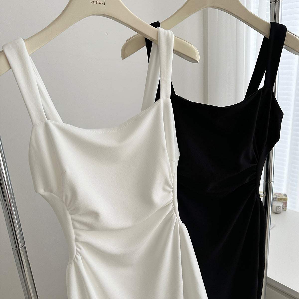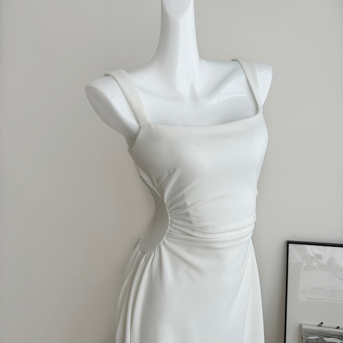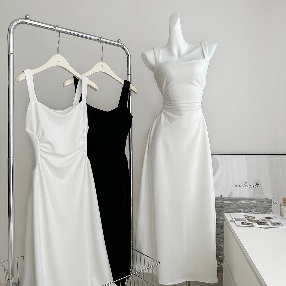 Suspender dress 2025 new square neck French waist niche long skirt R2077