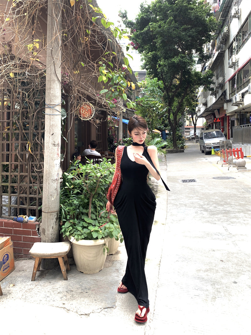 Suspender dress 2025 new style temperament figure-hugging waist slimming hip skirt R0570