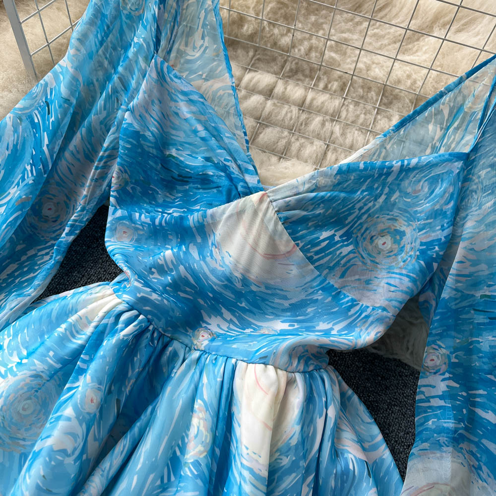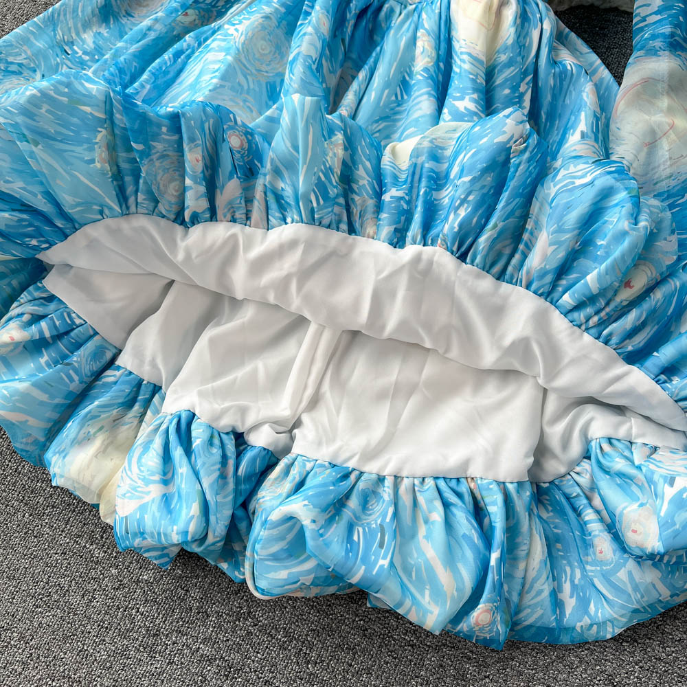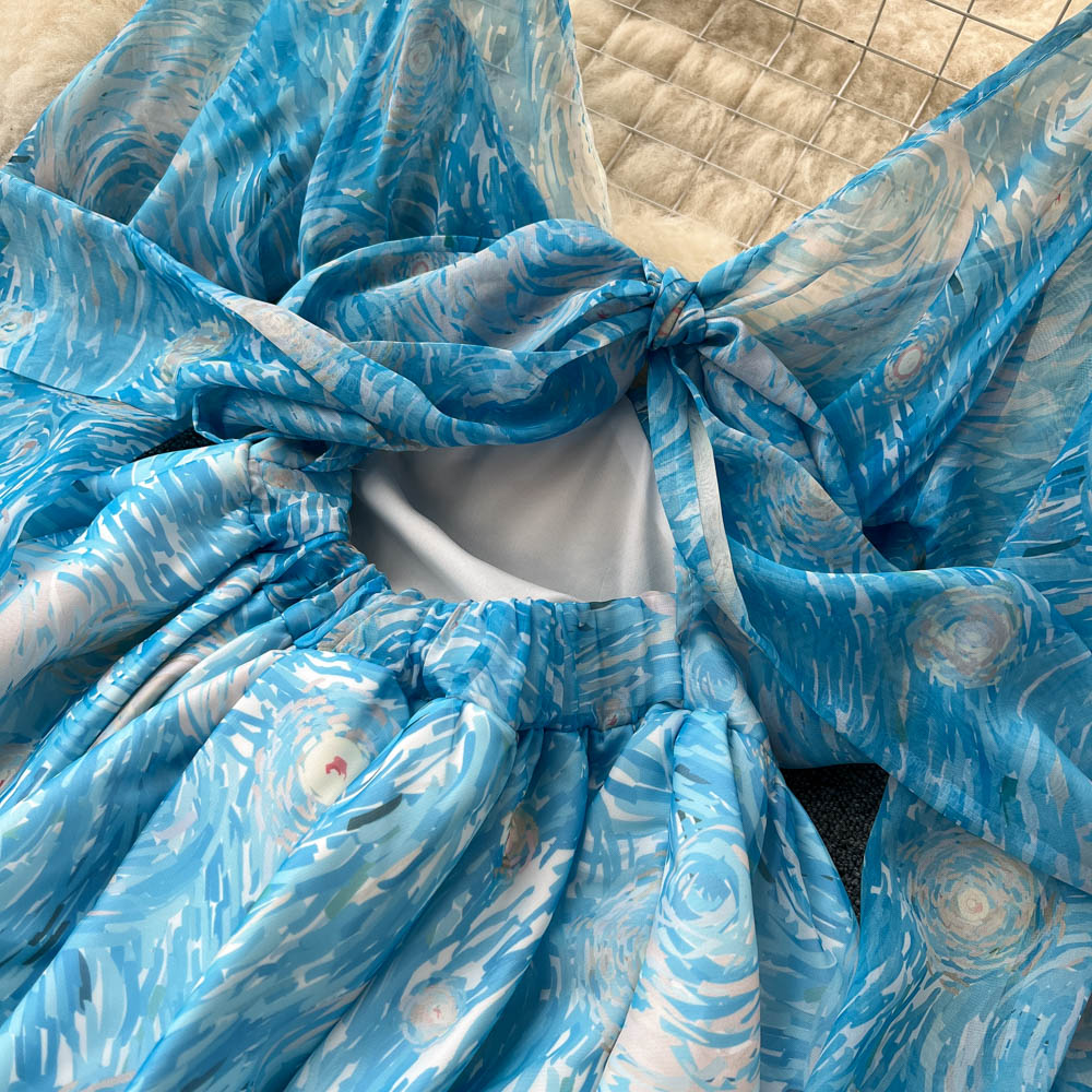 Sweet hot girl lantern sleeve waist backless puffy floral dress princess petite short skirt R2327