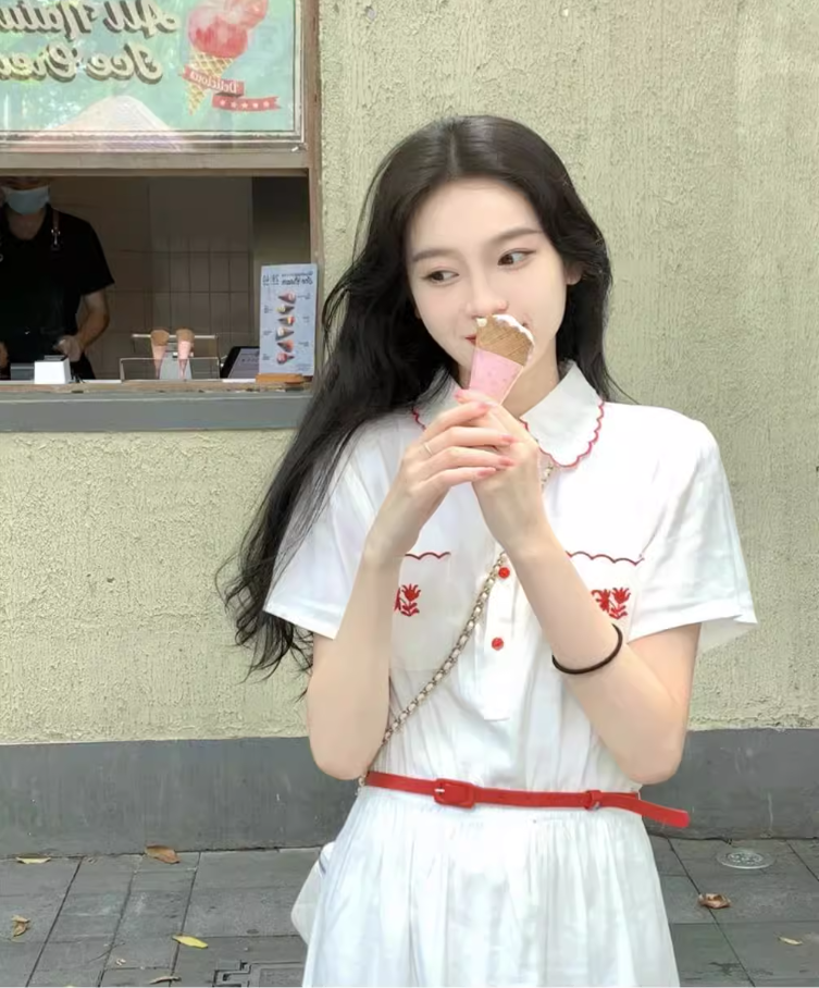 Tea break French style doll collar white dress small fresh cute long dress gentle style slim R1641