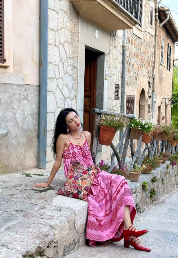 Travel wear ethnic style embroidery seaside vacation suspender dress R1573