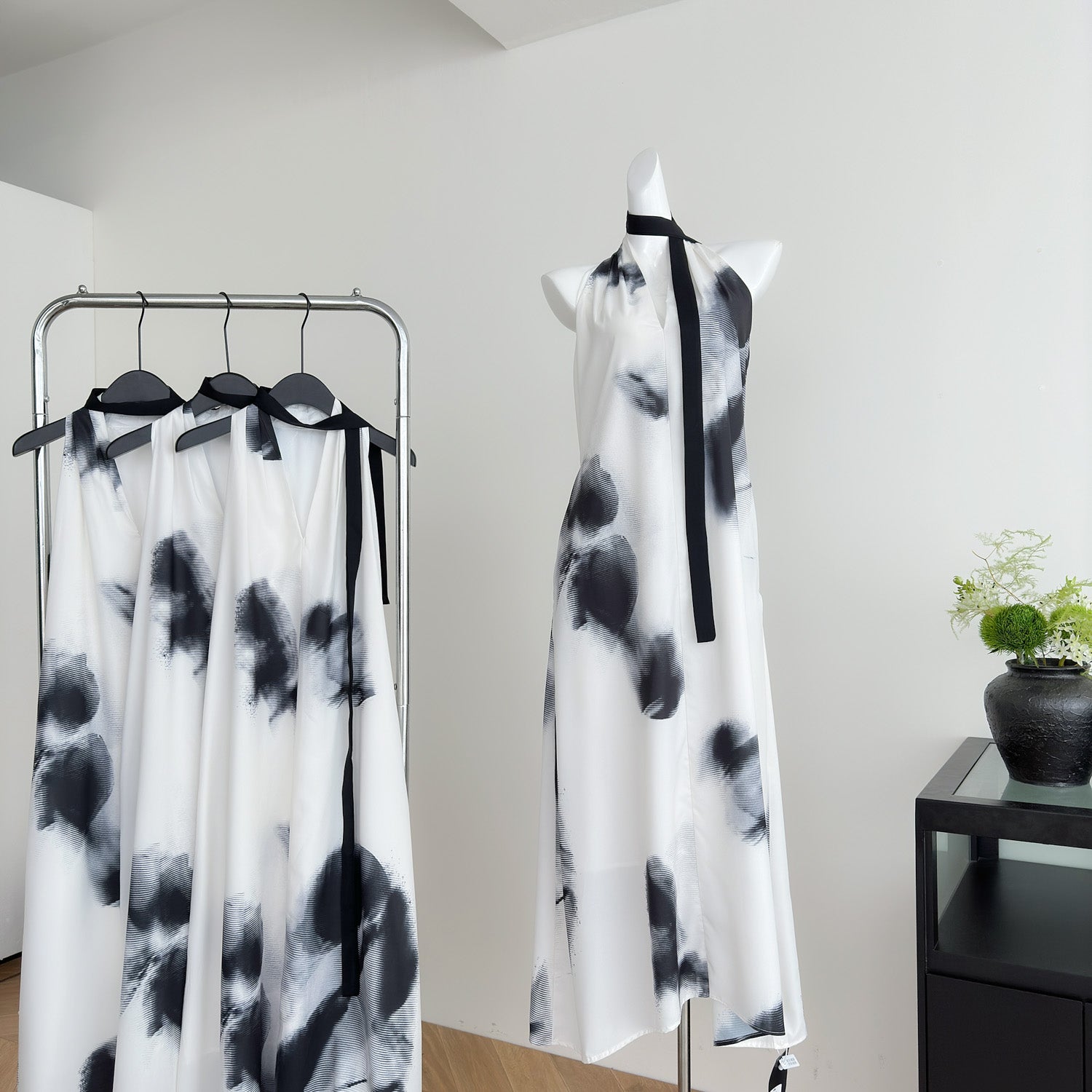 Vacation super beautiful dress summer generous halter neck suspender skirt vest skirt R2182
