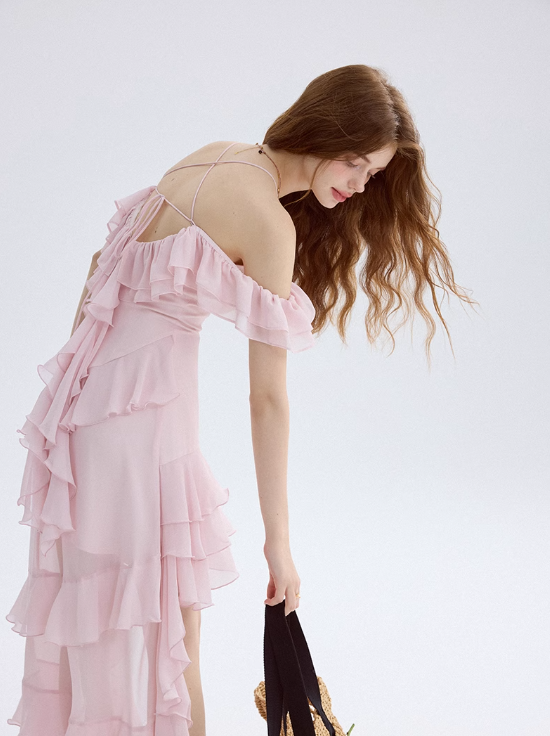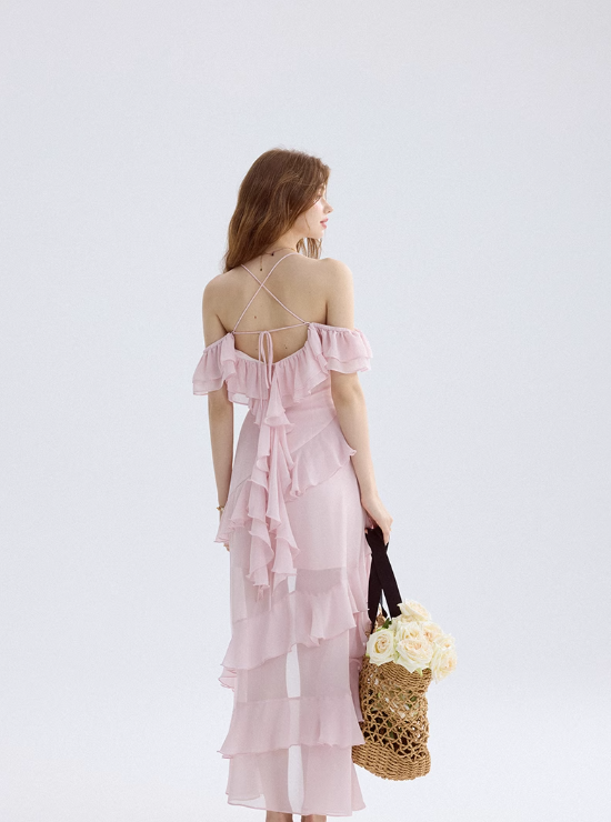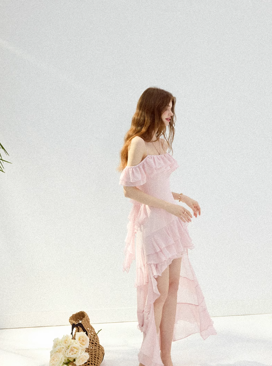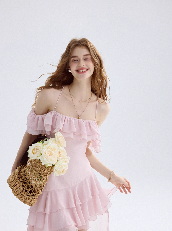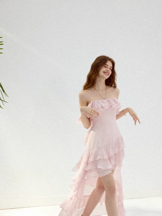 Watercolor flower path pink dress high-grade suspender skirt short skirt female summer R3422